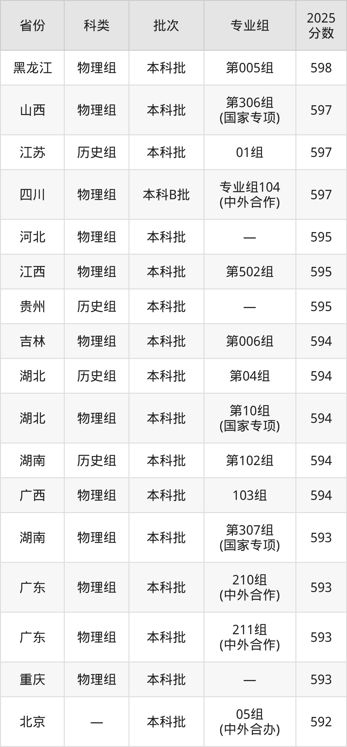 | 10 | 理科试验班 |