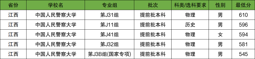 2025年中国人民警察大学公安专业在江西的录取分数线整理如下,供大家参考。
