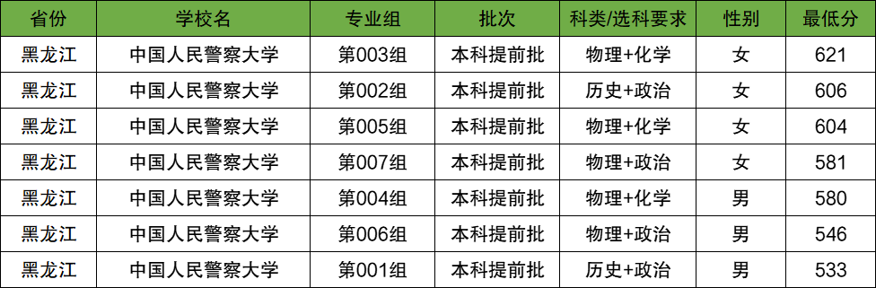 2025年中国人民警察大学公安专业在黑龙江的录取分数线整理如下,供大家参考。