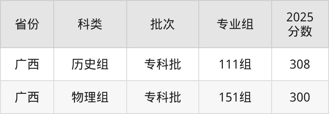 下面是防城港职业技术学院2025年在全国各省的录取分数线一览表,供参考:
