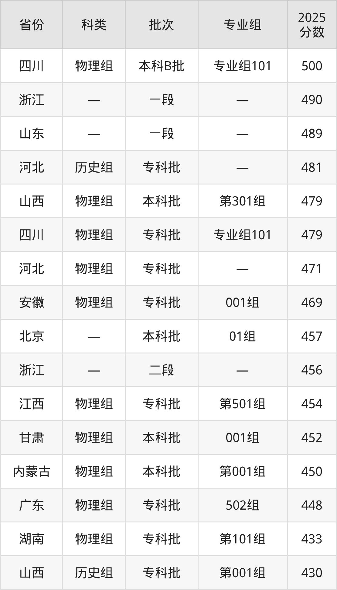 下面是黄河水利职业技术大学2025年在全国各省的录取分数线一览表,供参考: