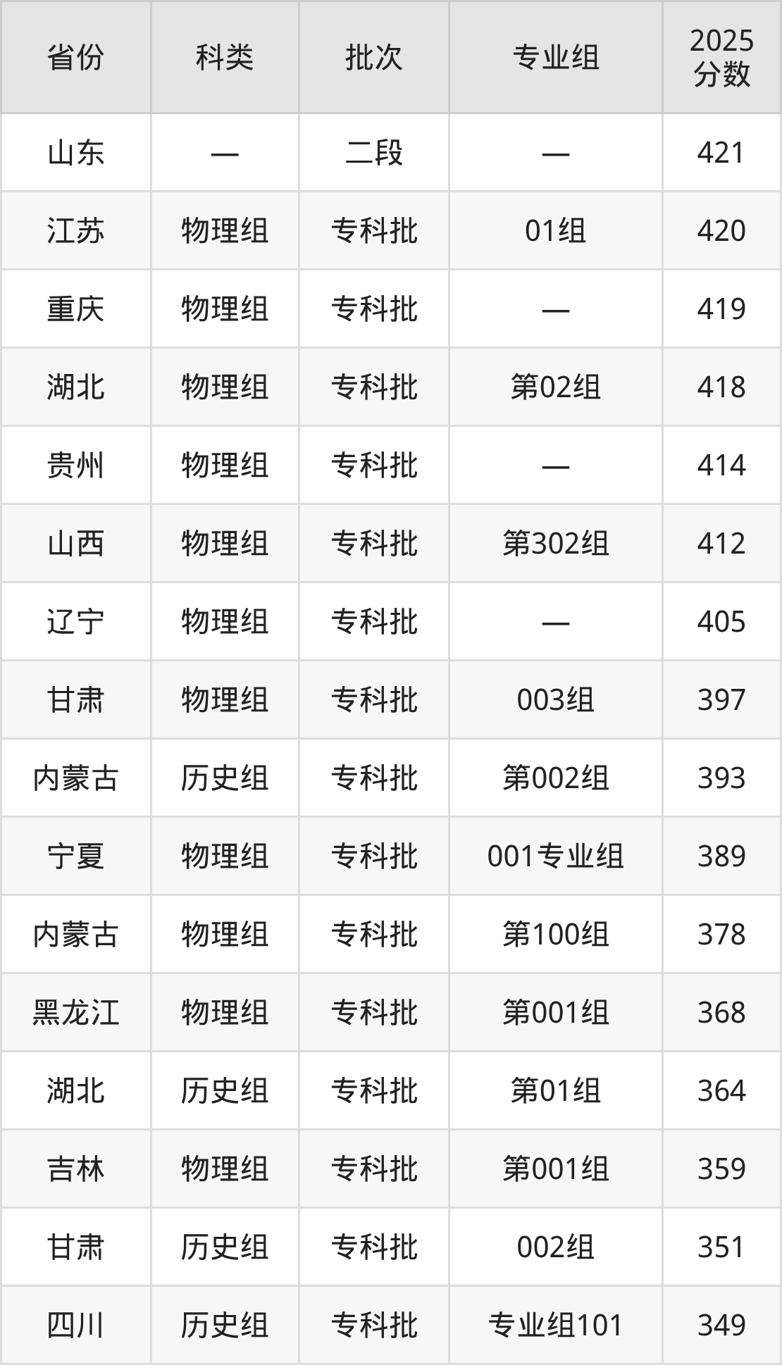 黄河水利职业技术大学在省外招生最低录取分数线为349分,不同地区、不同科类的考生最低分有差异。