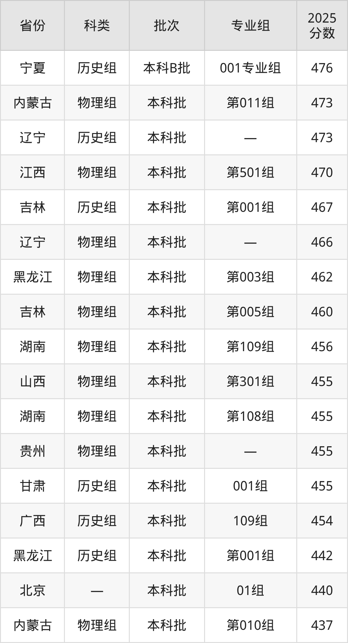 山西传媒学院在省内招生最低录取分数线为455分,在省外招生最低录取分数线为402分,不同地区、不同科类的考生最低分有差异。