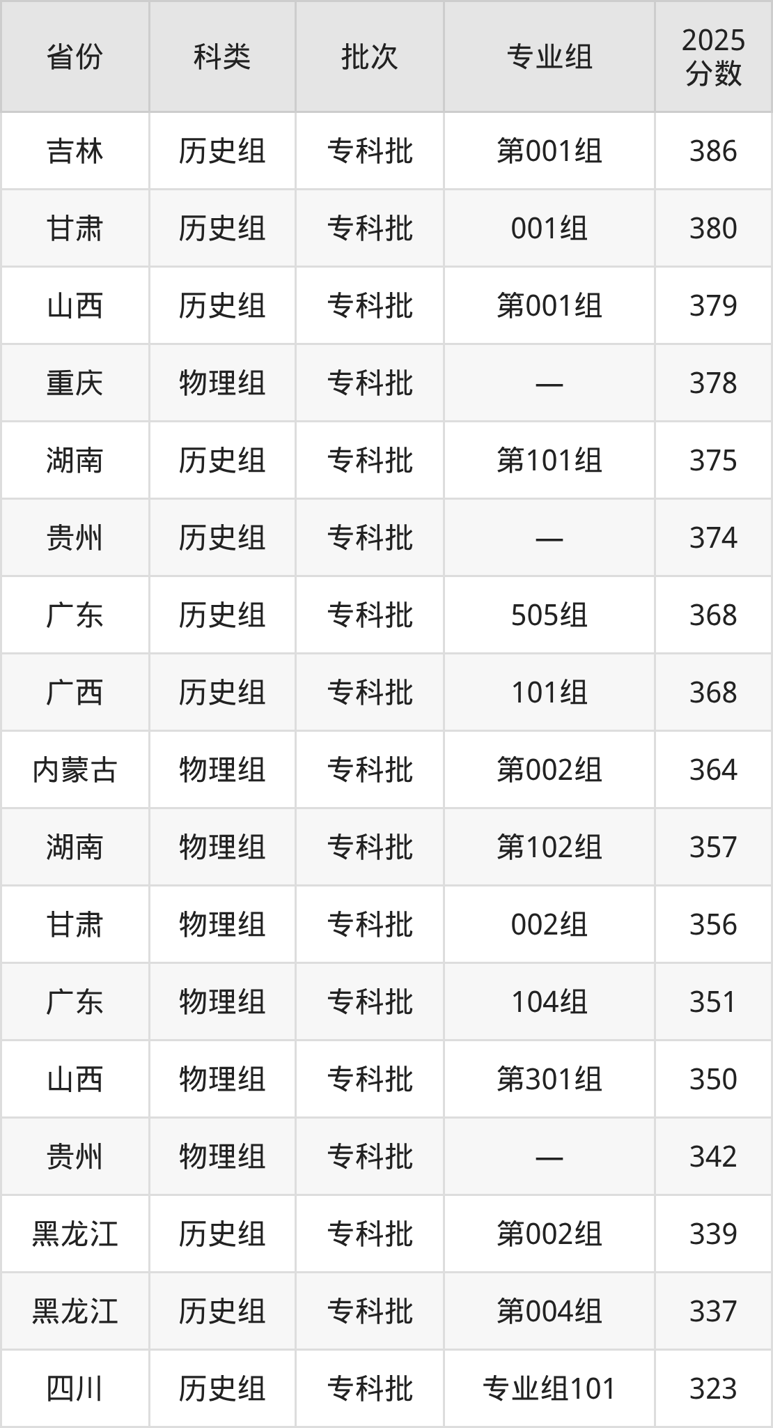 下面是黑龙江护理高等专科学校2025年在全国各省的录取分数线一览表,供参考: