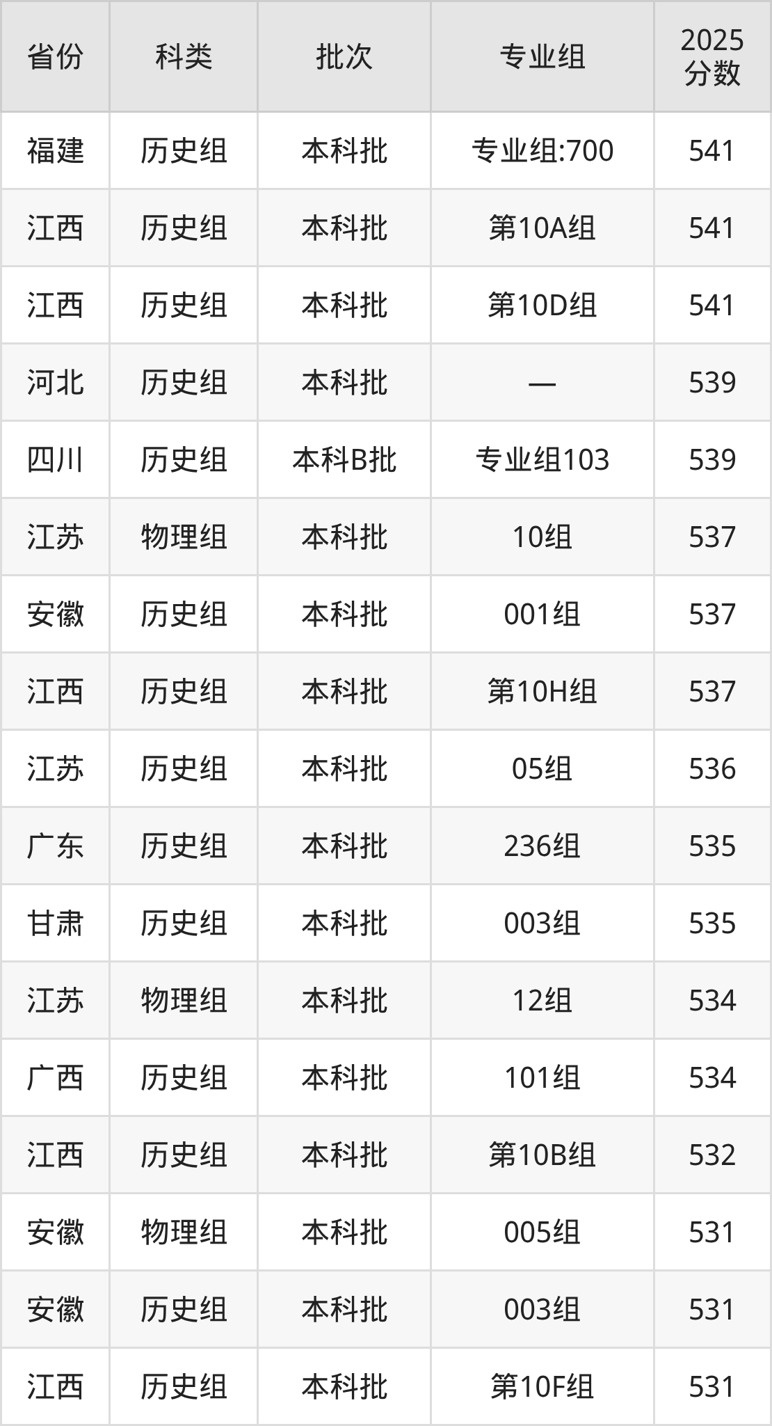 下面是赣南师范大学2025年在全国各省的录取分数线一览表,供参考: