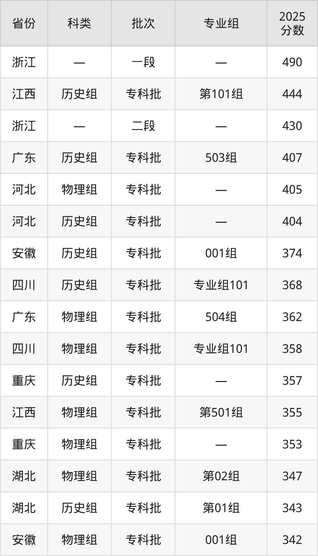 而浙江地区考生的分数门槛最高,2025年泉州经贸职业技术学院在浙江招生最低分为490分,考生至少要超一段线0分才有可能被录取。