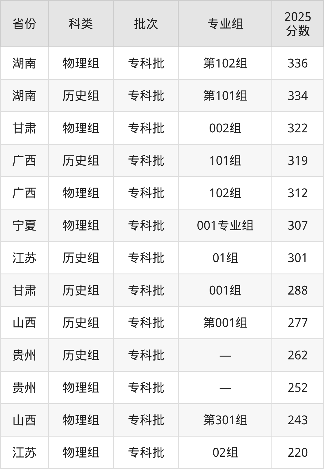 下面是泉州经贸职业技术学院2025年在全国各省的录取分数线一览表,供参考: