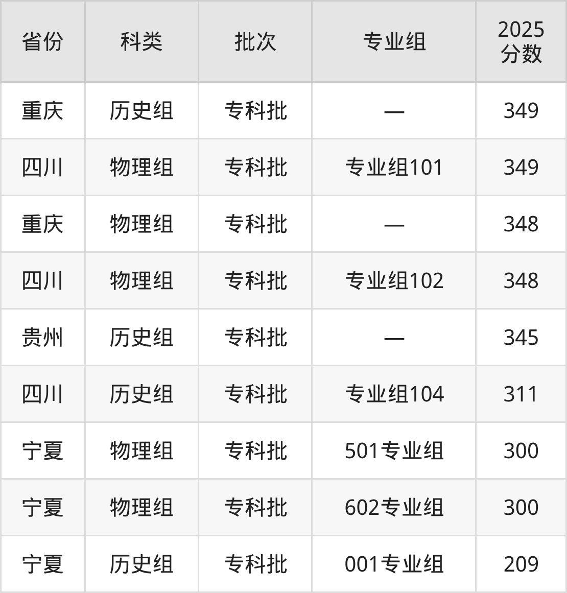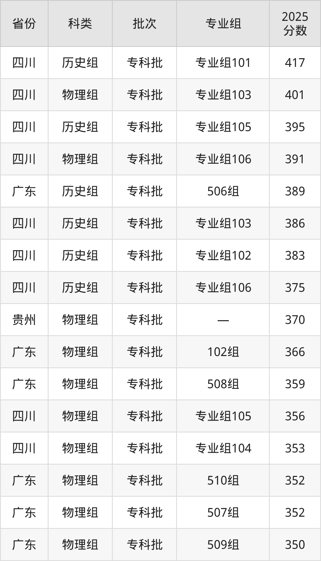 而四川地区历史组考生的分数门槛最高,2025年西双版纳职业技术学院专业组101在四川招生最低分为417分,考生至少要超专科线267分才有可能被录取。