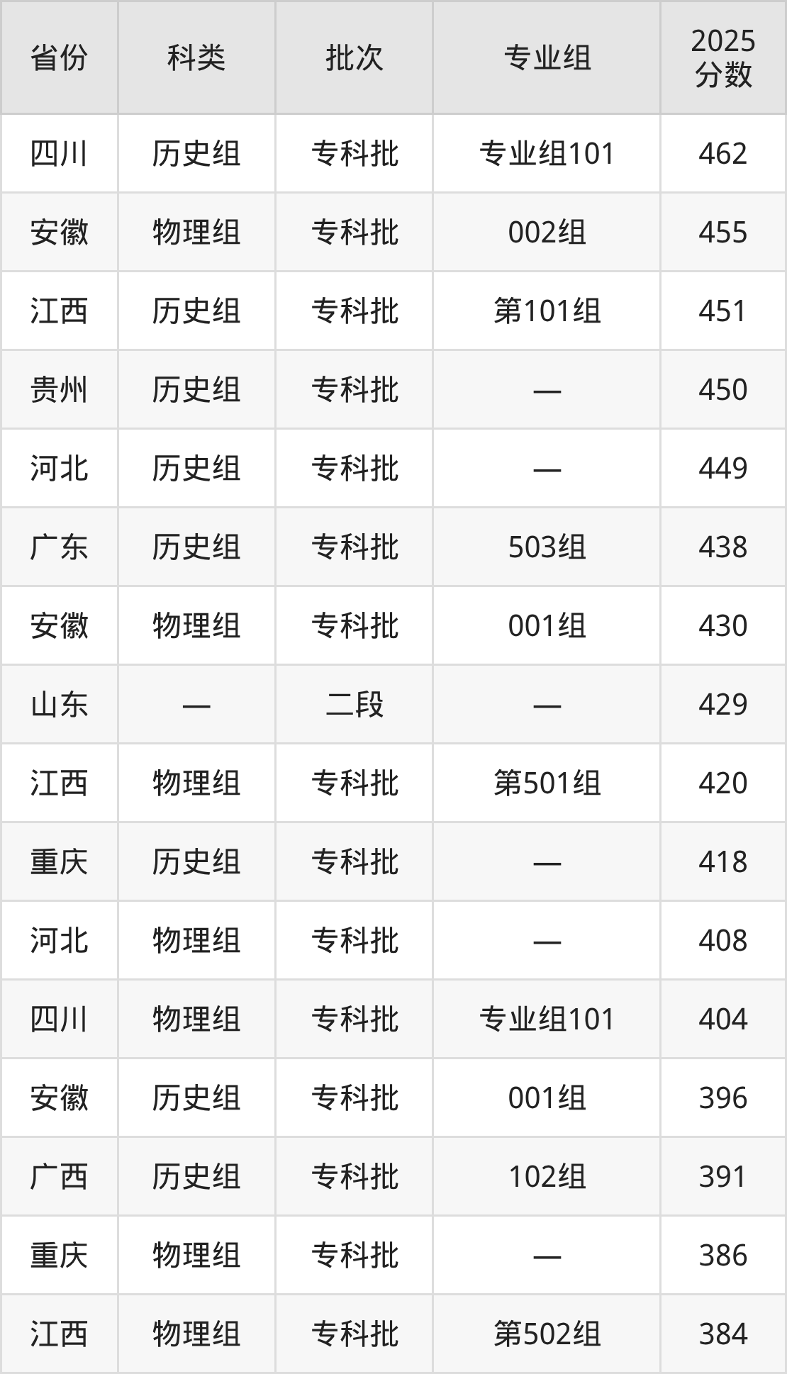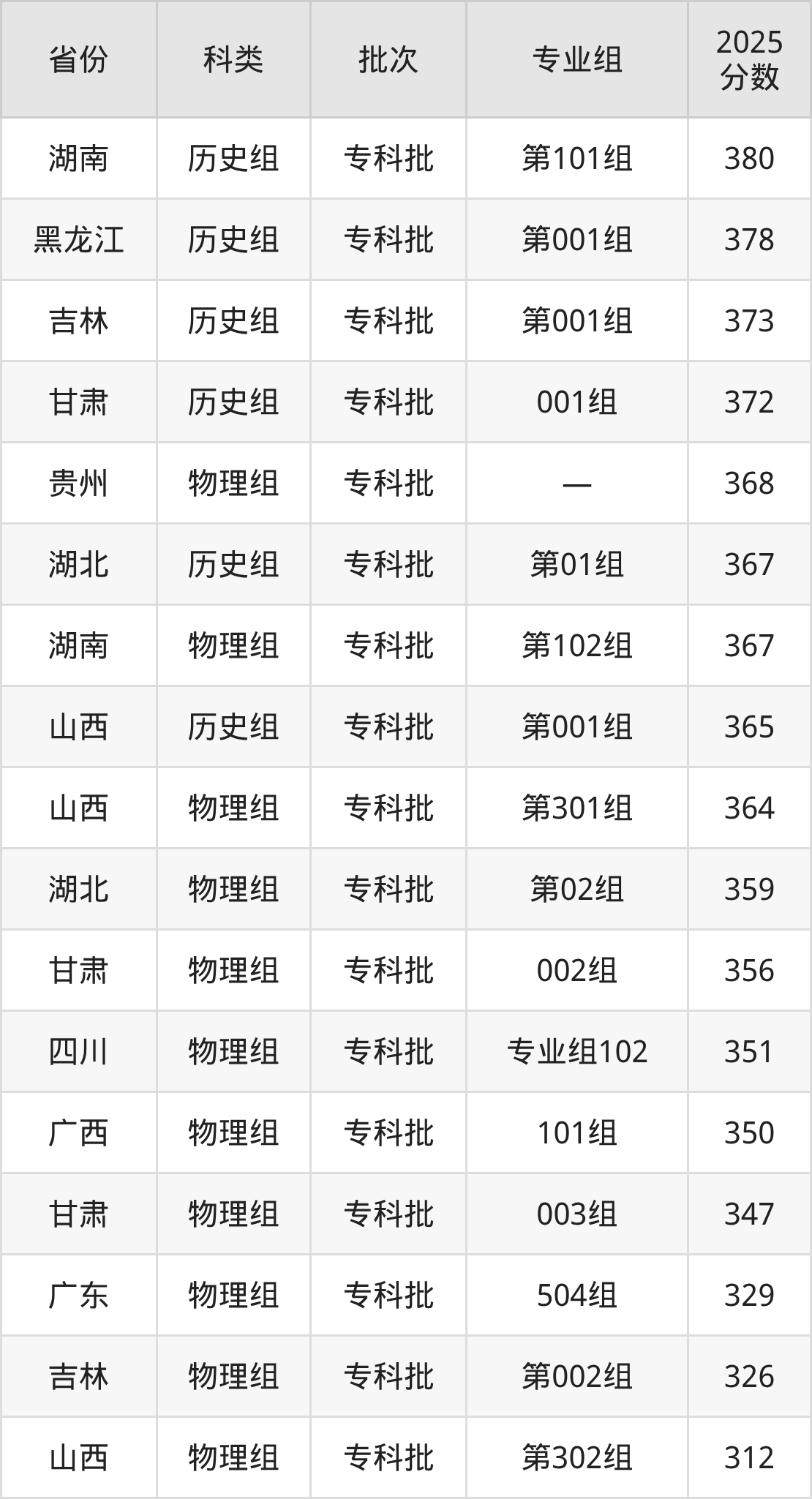 下面是楚雄医药高等专科学校2025年在全国各省的录取分数线一览表,供参考: