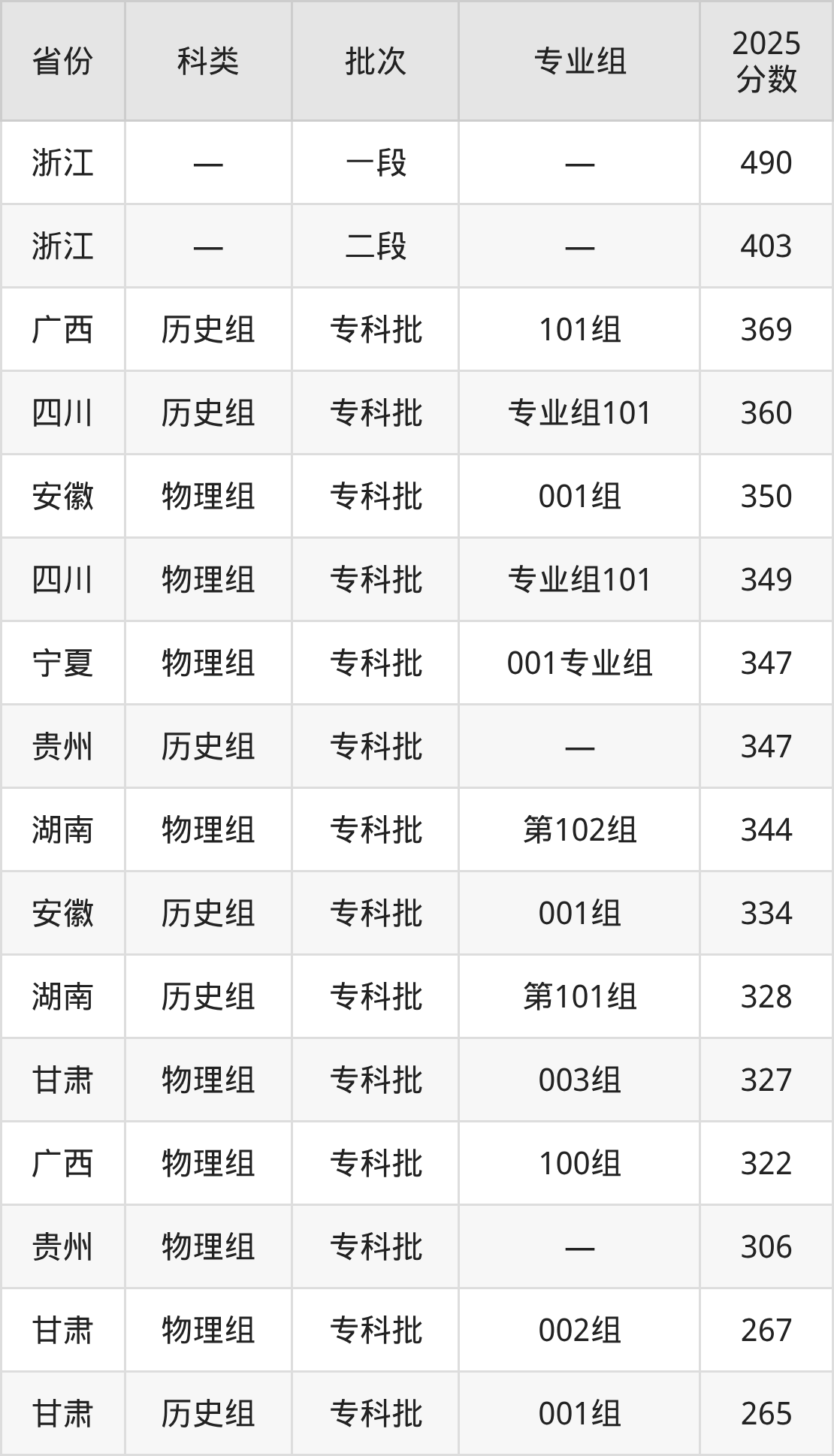 而浙江地区考生的分数门槛最高,2025年宁德职业技术学院在浙江招生最低分为490分,考生至少要超一段线0分才有可能被录取。