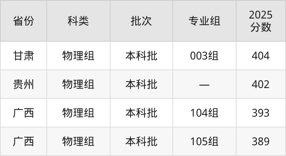 浙江工业大学之江学院在省外招生的最低分为389分,其中广西地区物理组考生上浙江工业大学之江学院的分数门槛最低,考生成绩超本科线19分(389分)可上。其次是贵州物理组考生,上浙江工业大学之江学院至少要超本科线15分(402分)。