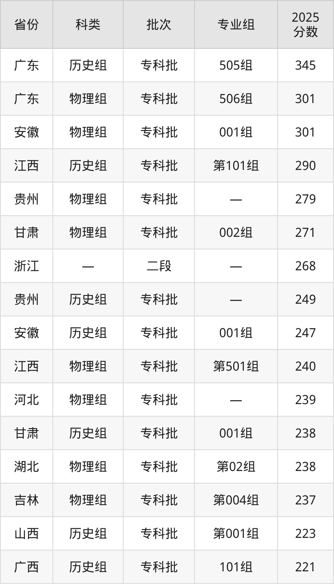 而广东地区历史组考生的分数门槛最高,2025年四川国际标榜职业学院505组在广东招生最低分为345分,考生至少要超专科线130分才有可能被录取。