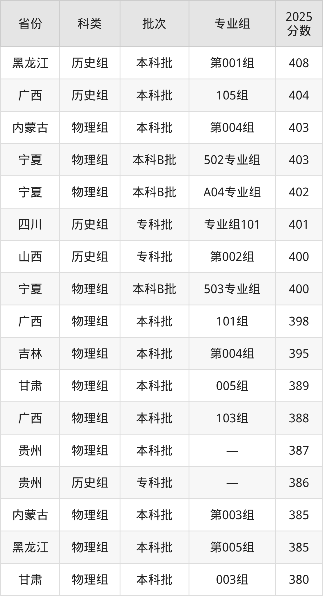下面是天津天狮学院2025年在全国各省的录取分数线一览表,供参考: