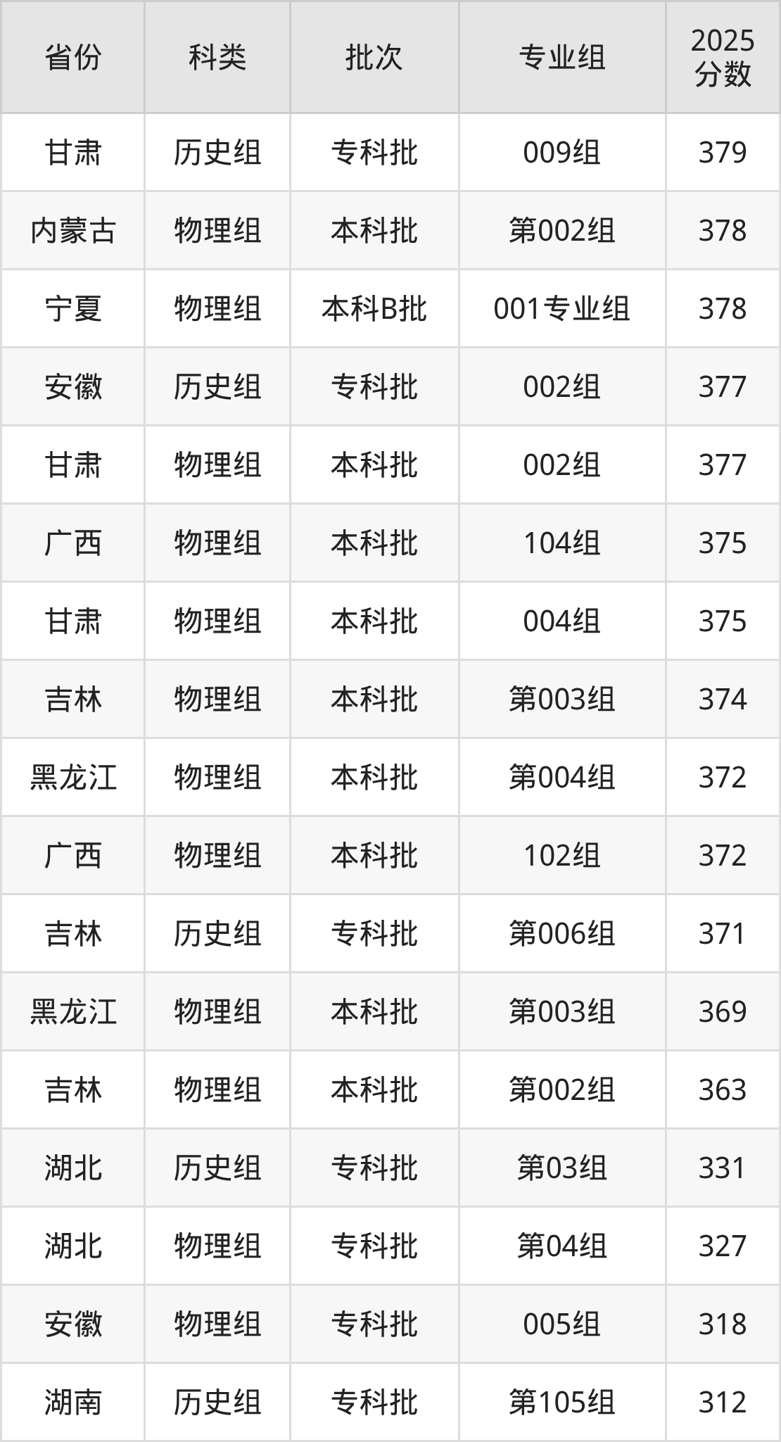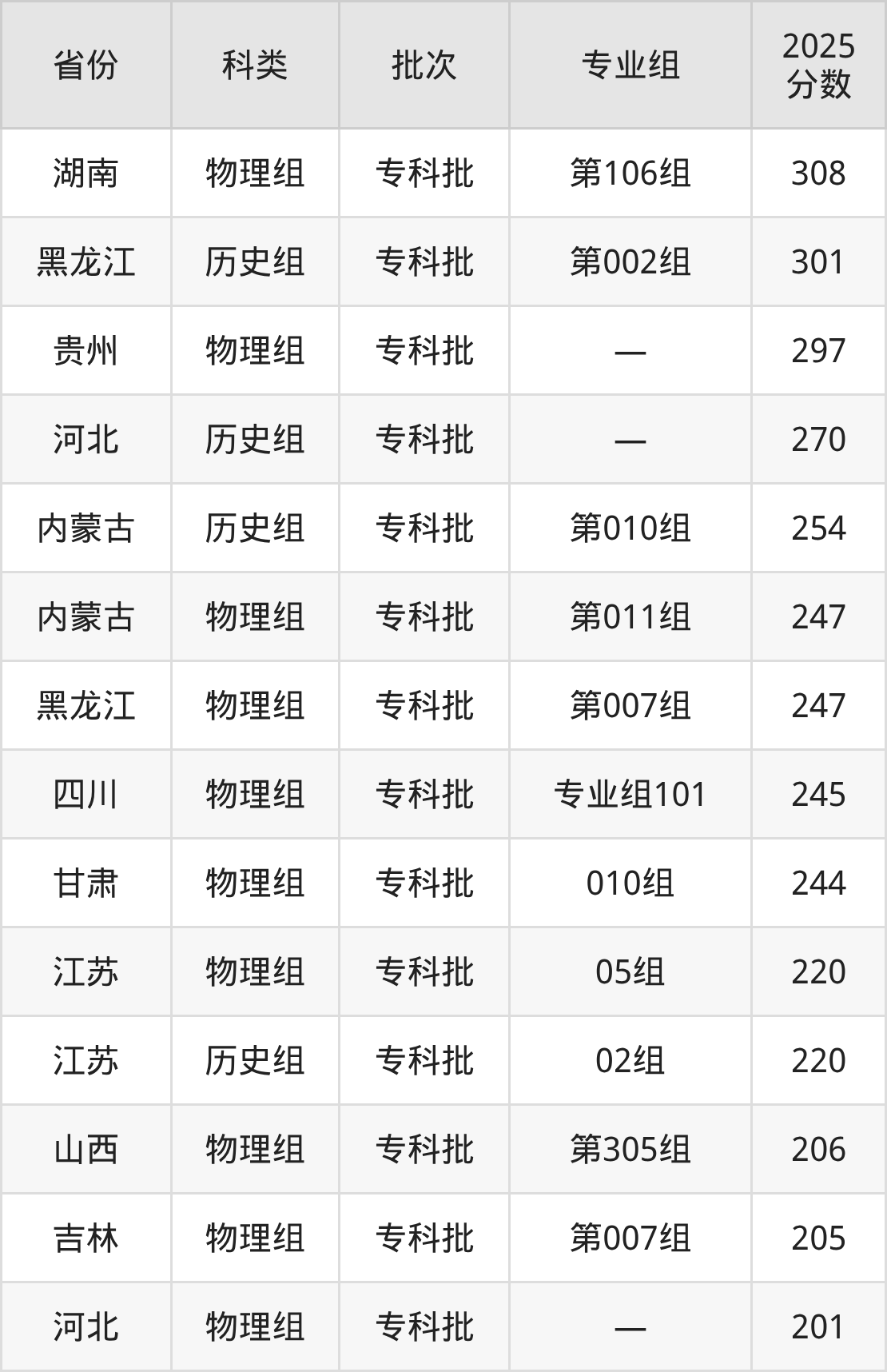 天津天狮学院在市外招生的最低分为201分,其中河北地区物理组考生上天津天狮学院的分数门槛最低,考生成绩超专科线1分(201分)可上。其次是吉林物理组考生,上天津天狮学院至少要超专科线45分(205分)。