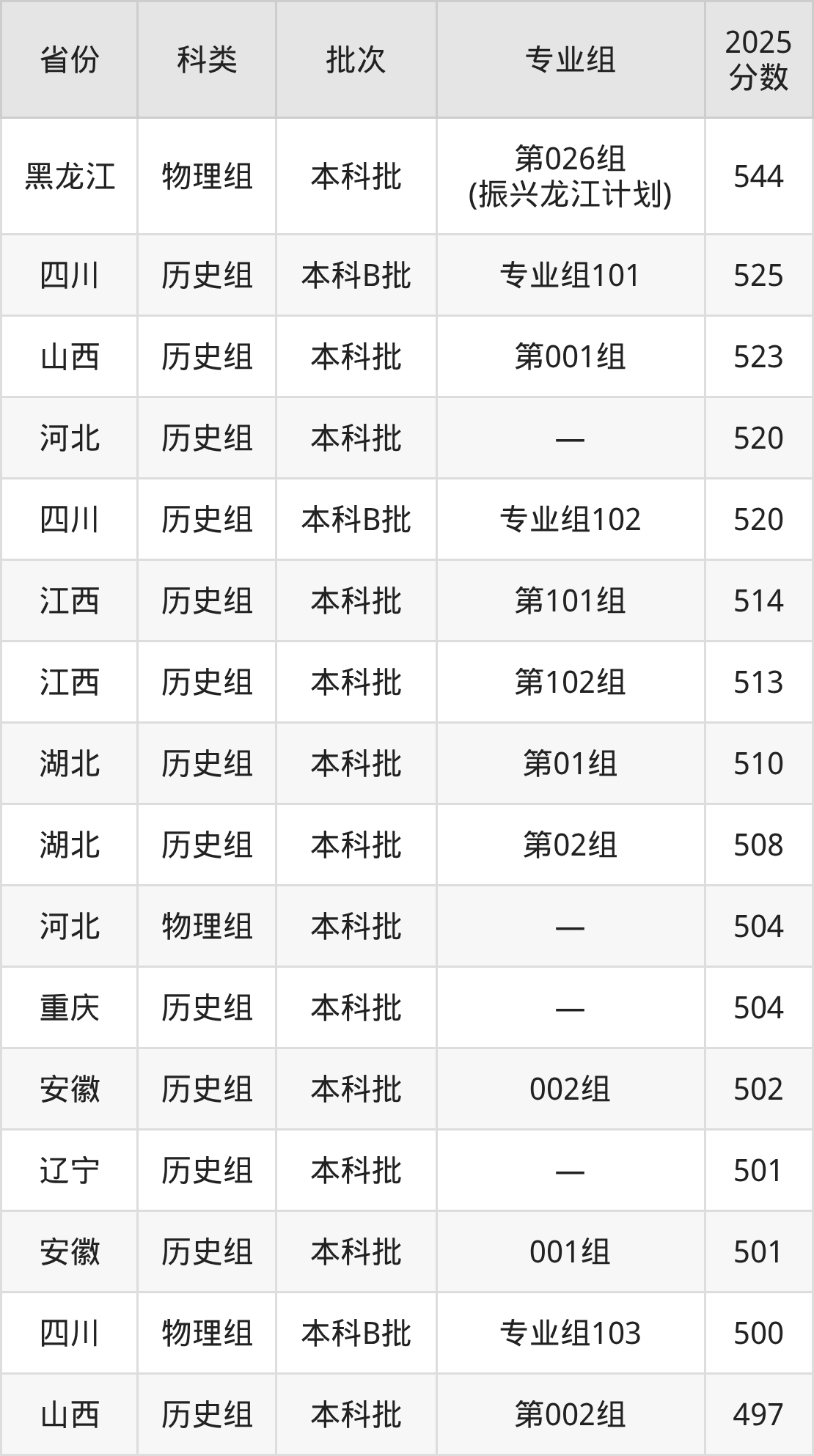 下面是绥化学院2025年在全国各省的录取分数线一览表,供参考: