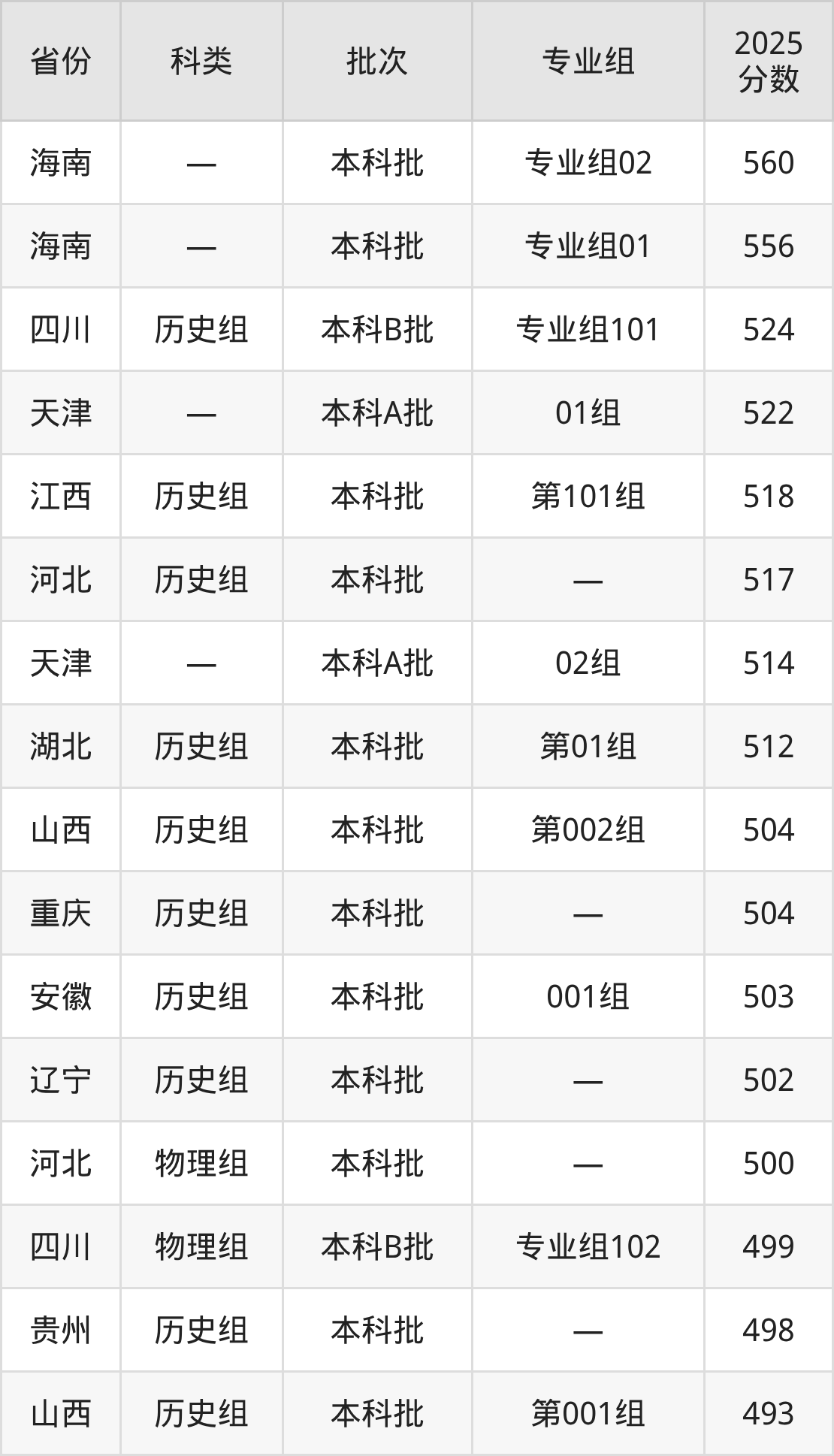 而海南地区考生的分数门槛最高,2025年唐山师范学院专业组02在海南招生最低分为560分,考生至少要超本科线80分才有可能被录取。