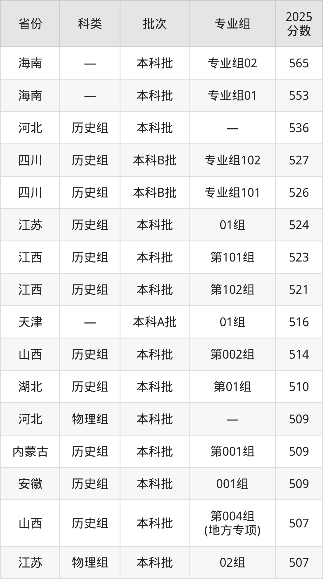 而海南地区考生的分数门槛最高,2025年晋中学院专业组02在海南招生最低分为565分,考生至少要超本科线85分才有可能被录取。