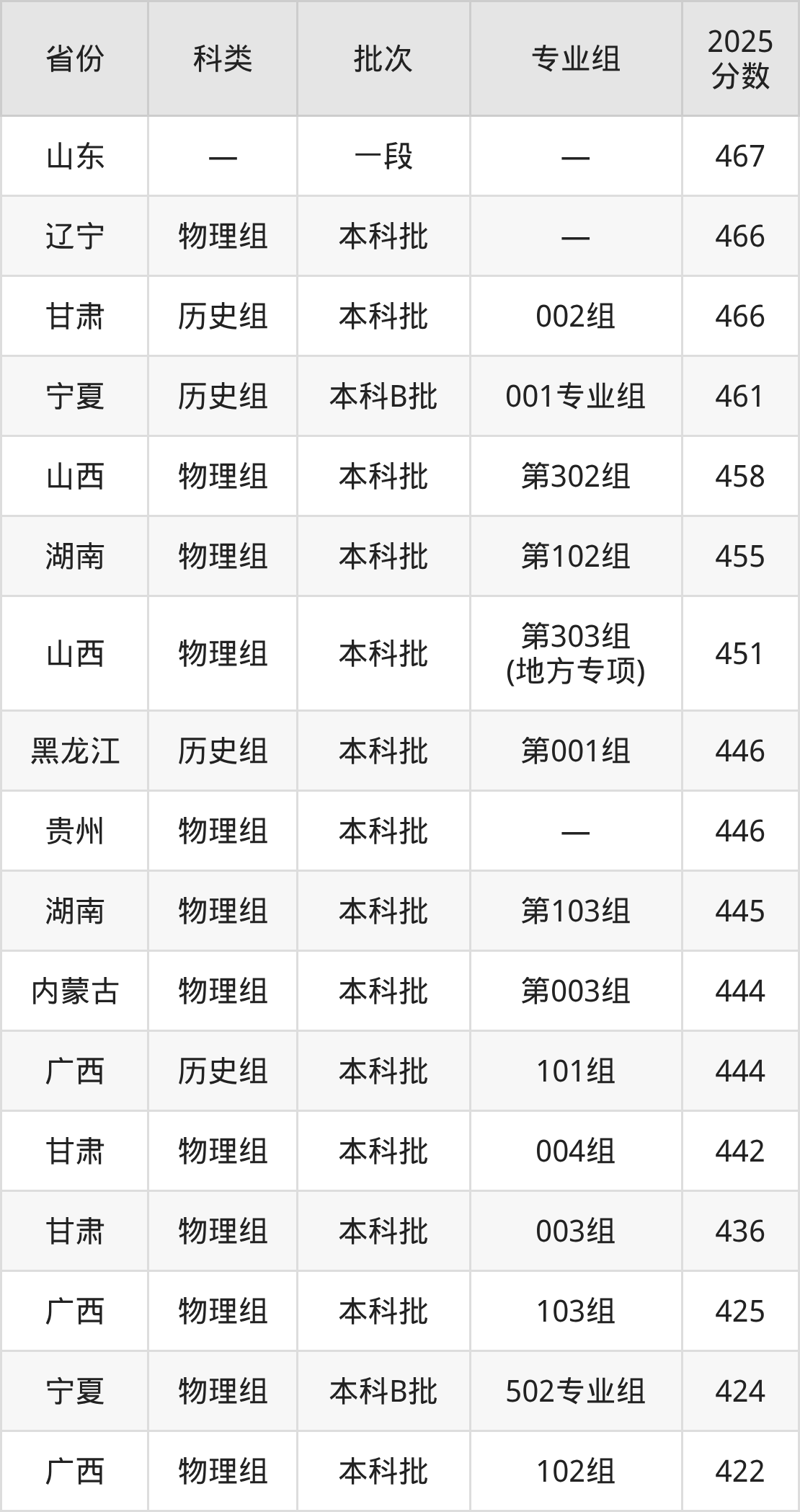 2026届考生如果想知道晋中学院最低多少分能上,可以根据该校近三年的录取最低分进行预估。下面以山东2023-2025年高考招录数据为例,预测2026年晋中学院在山东招生的最低分情况: