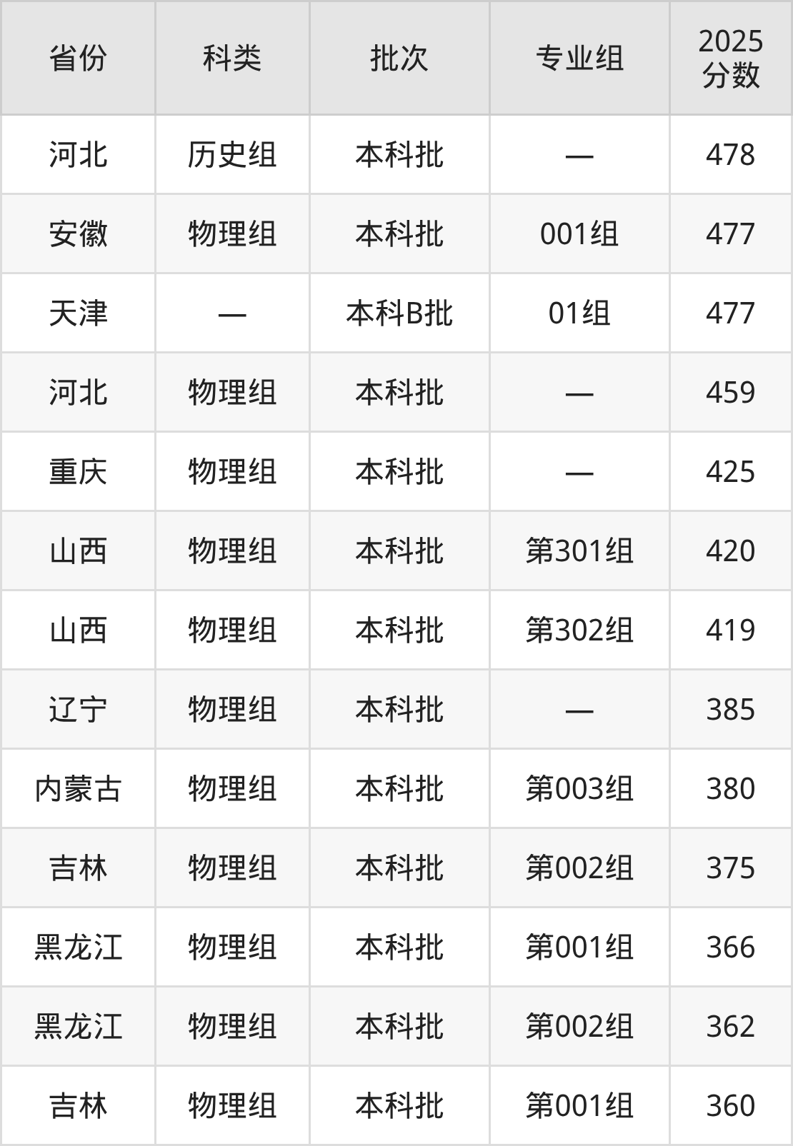 下面是河北工程技术学院2025年在全国各省的录取分数线一览表,供参考: