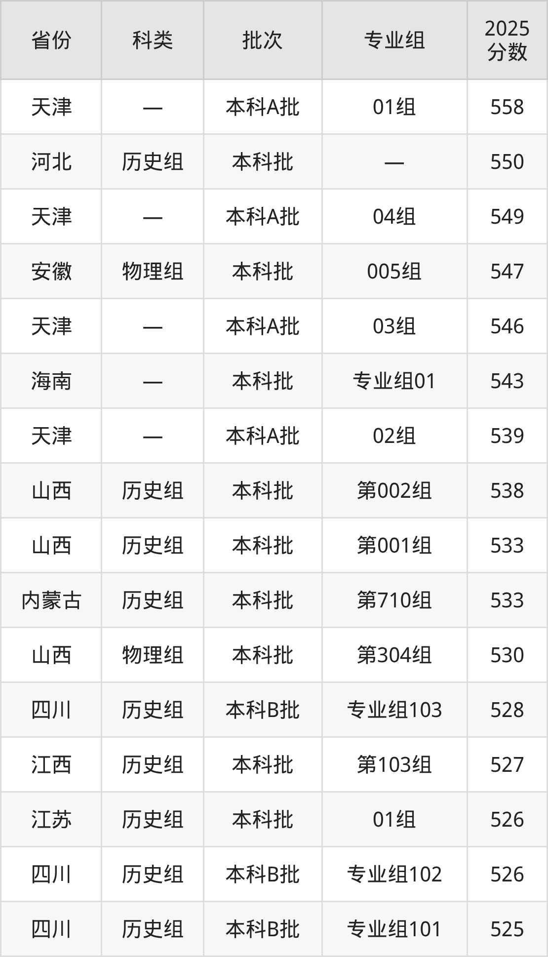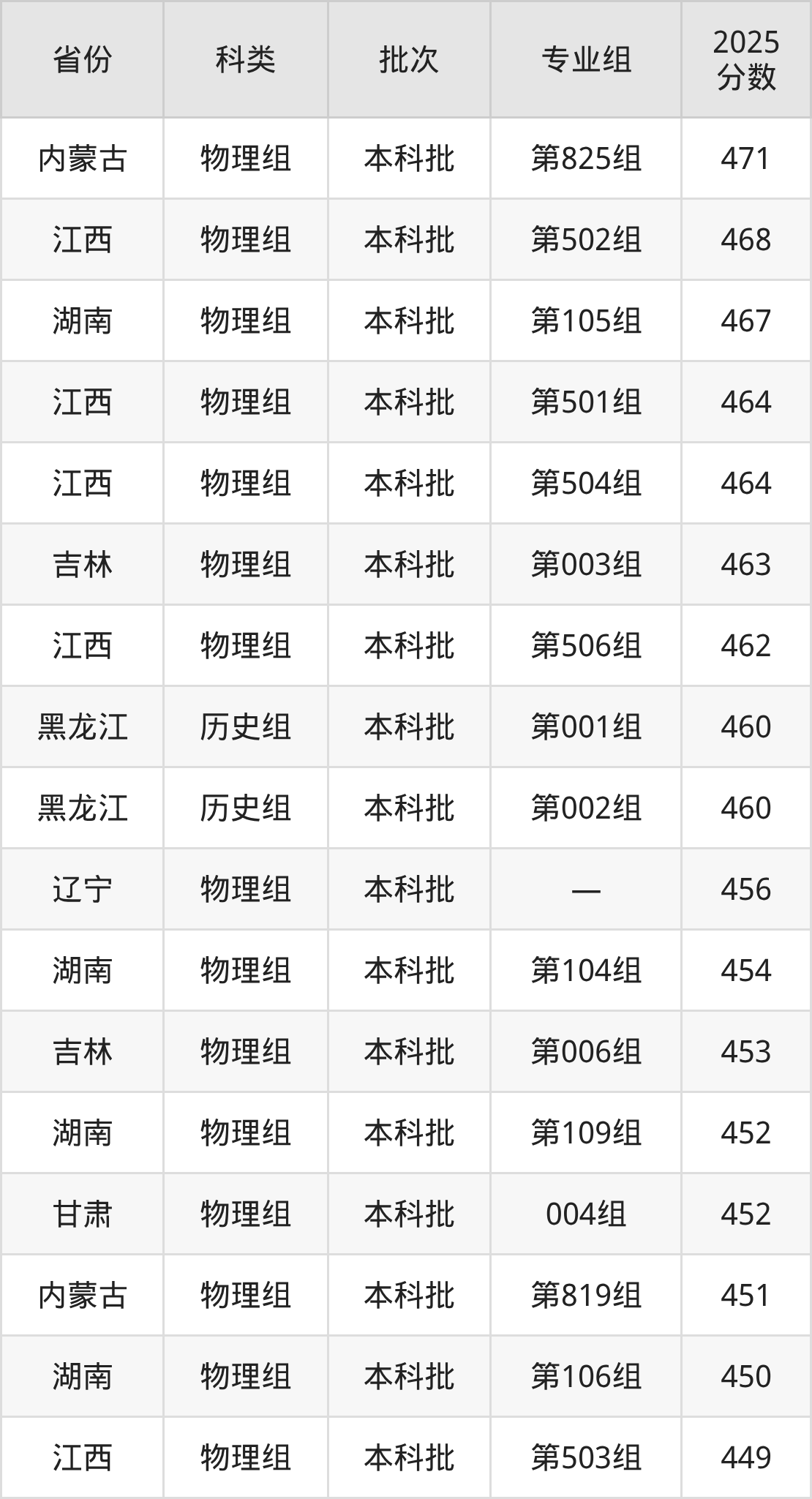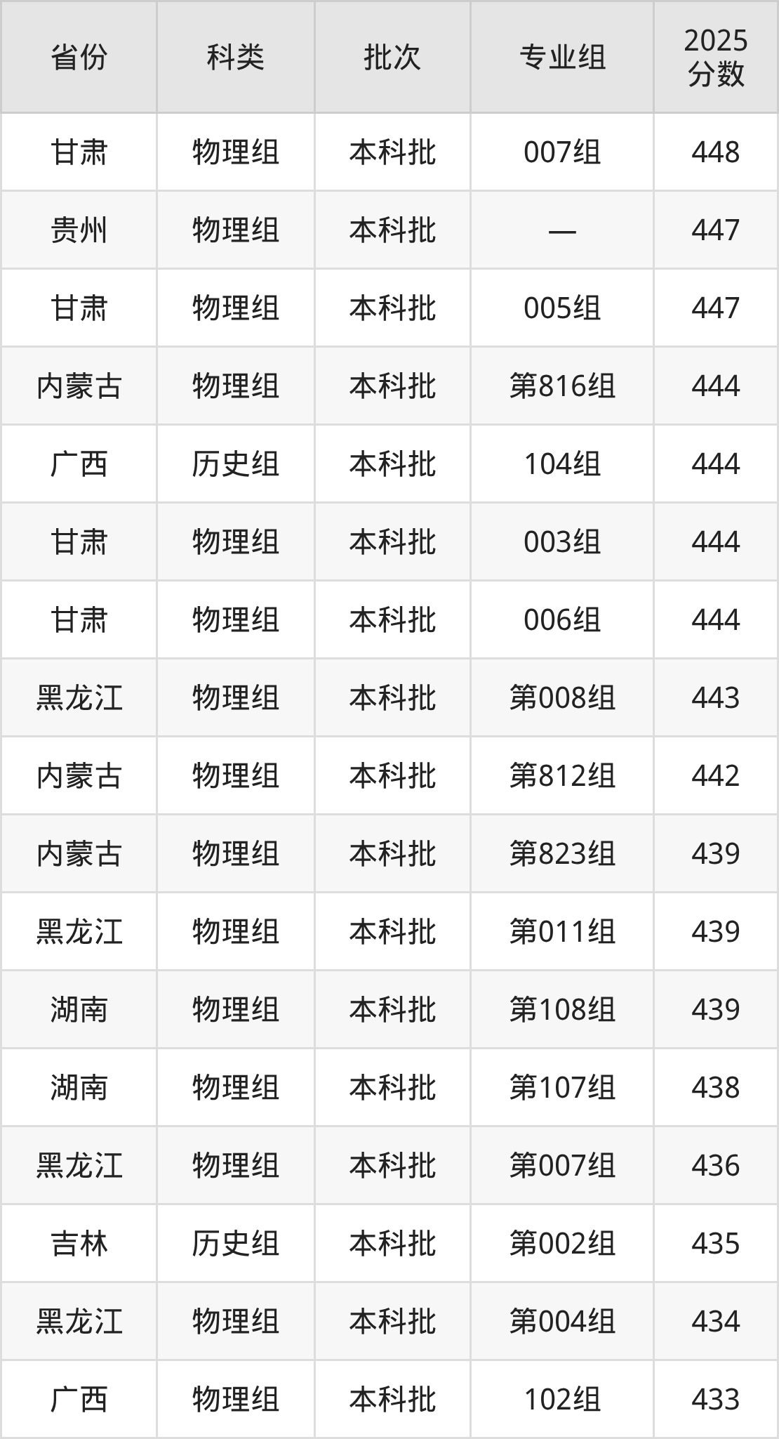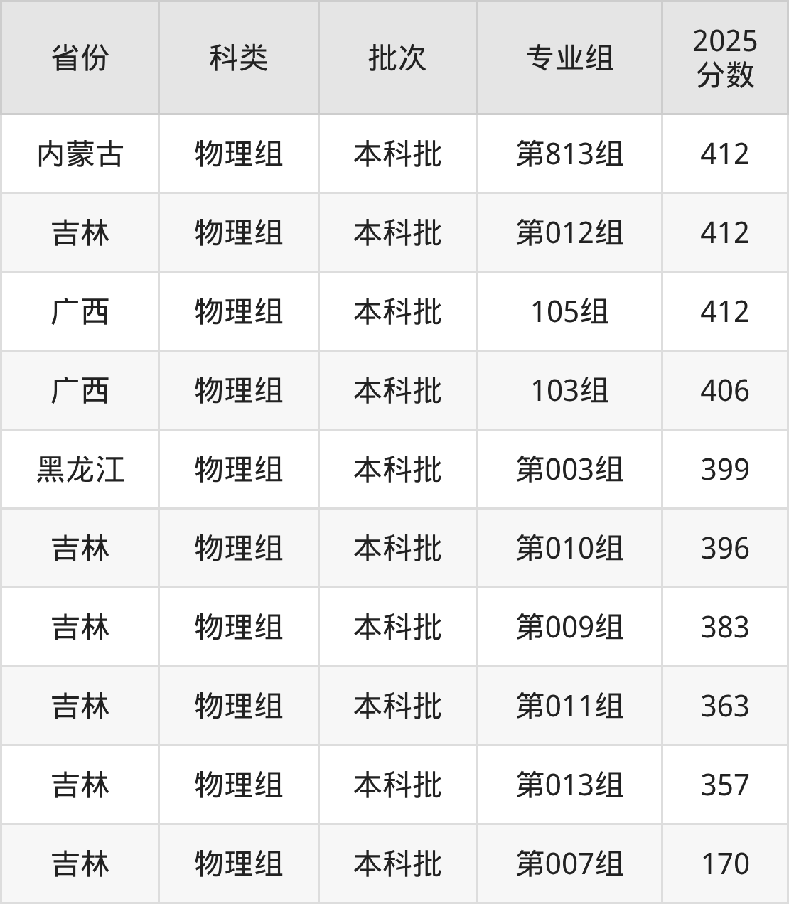 2025年内蒙古民族大学在全国普通批次招生的录取分数范围位于170~558分之间,其中自治区内分数范围为412分~533分,历史组最低分专业组为“第719组”,考生477分即可报考,物理组最低分专业组为“第813组”,考生412分即可报考。