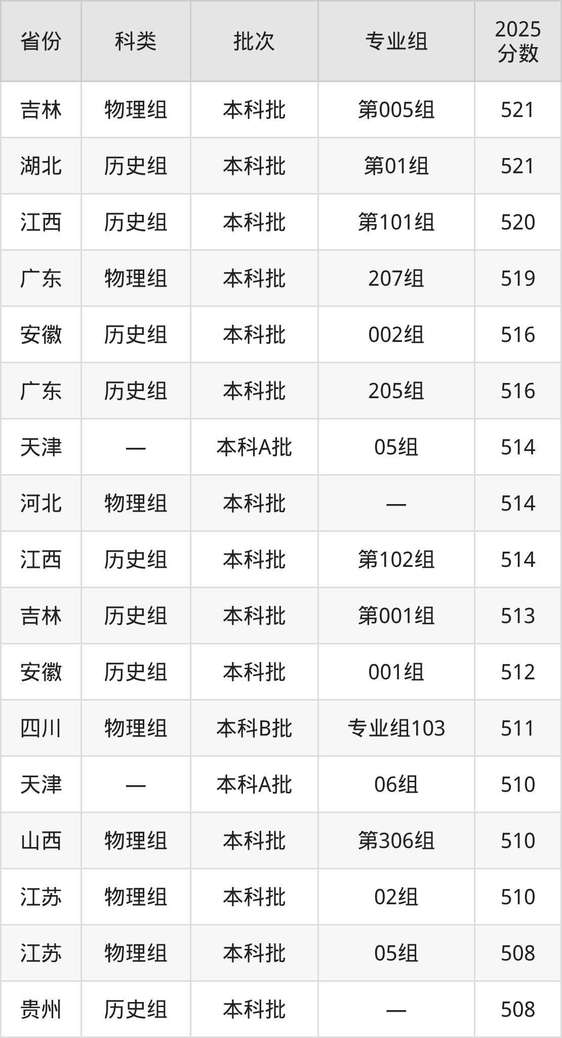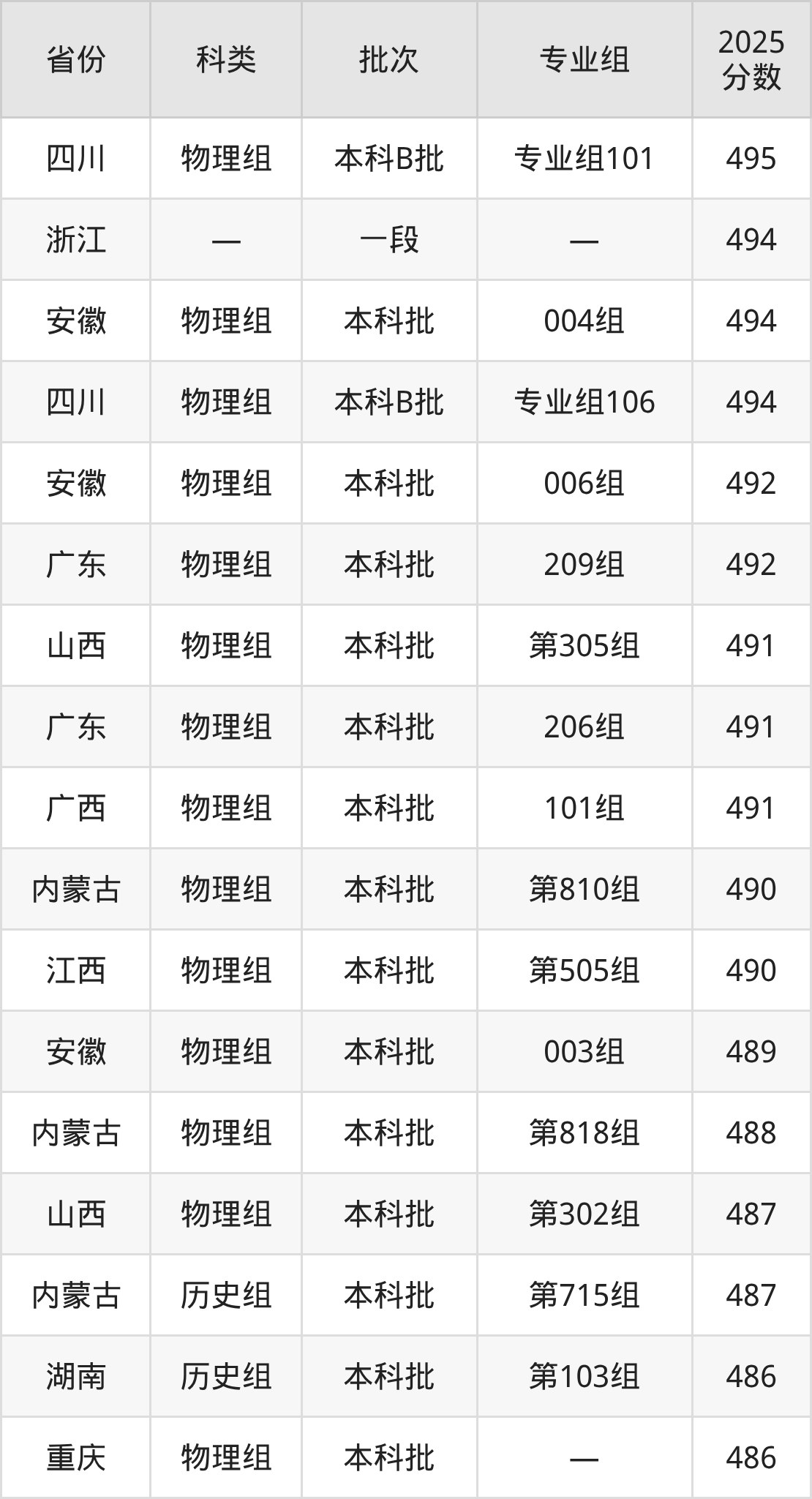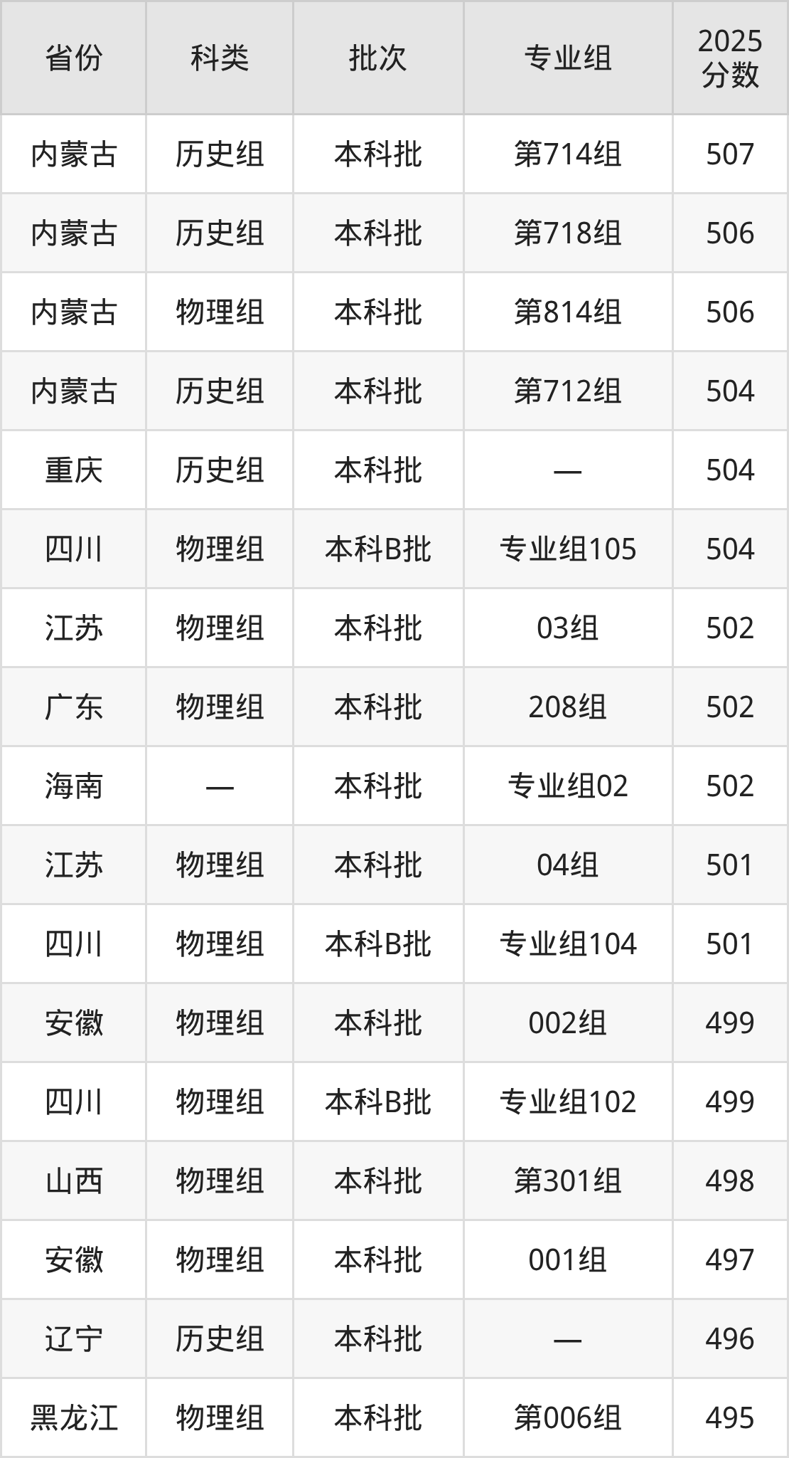 下面是内蒙古民族大学2025年在全国各省的录取分数线一览表,供参考: