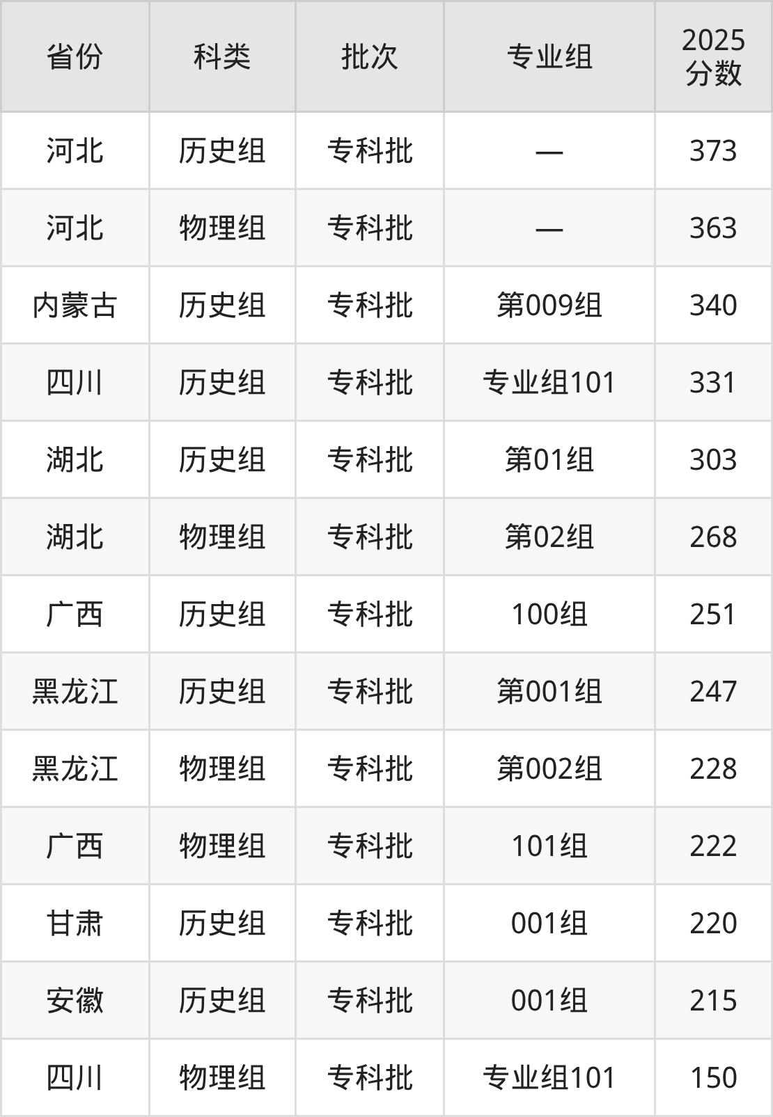 而河北地区历史组考生的分数门槛最高,2025年黑龙江艺术职业学院在河北招生最低分为373分,考生至少要超专科线173分才有可能被录取。