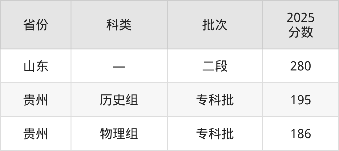下面是贵州水利水电职业技术学院2025年在全国各省的录取分数线一览表,供参考: