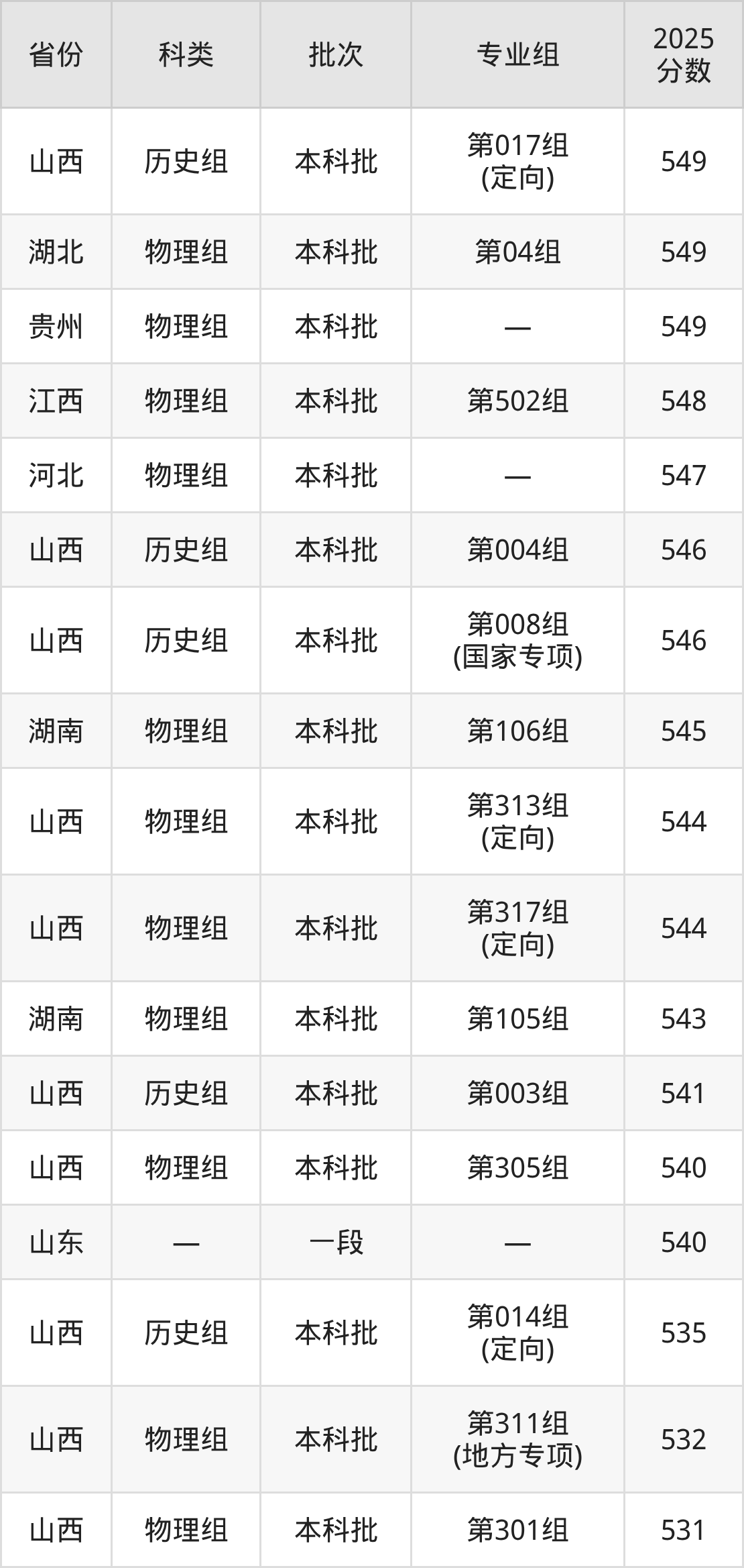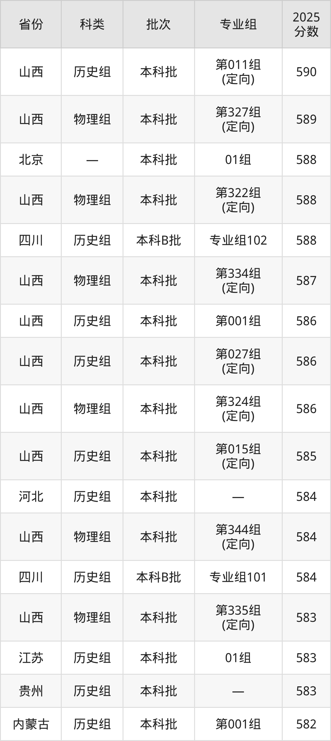下面是山西大学2025年在全国各省的录取分数线一览表,供参考: