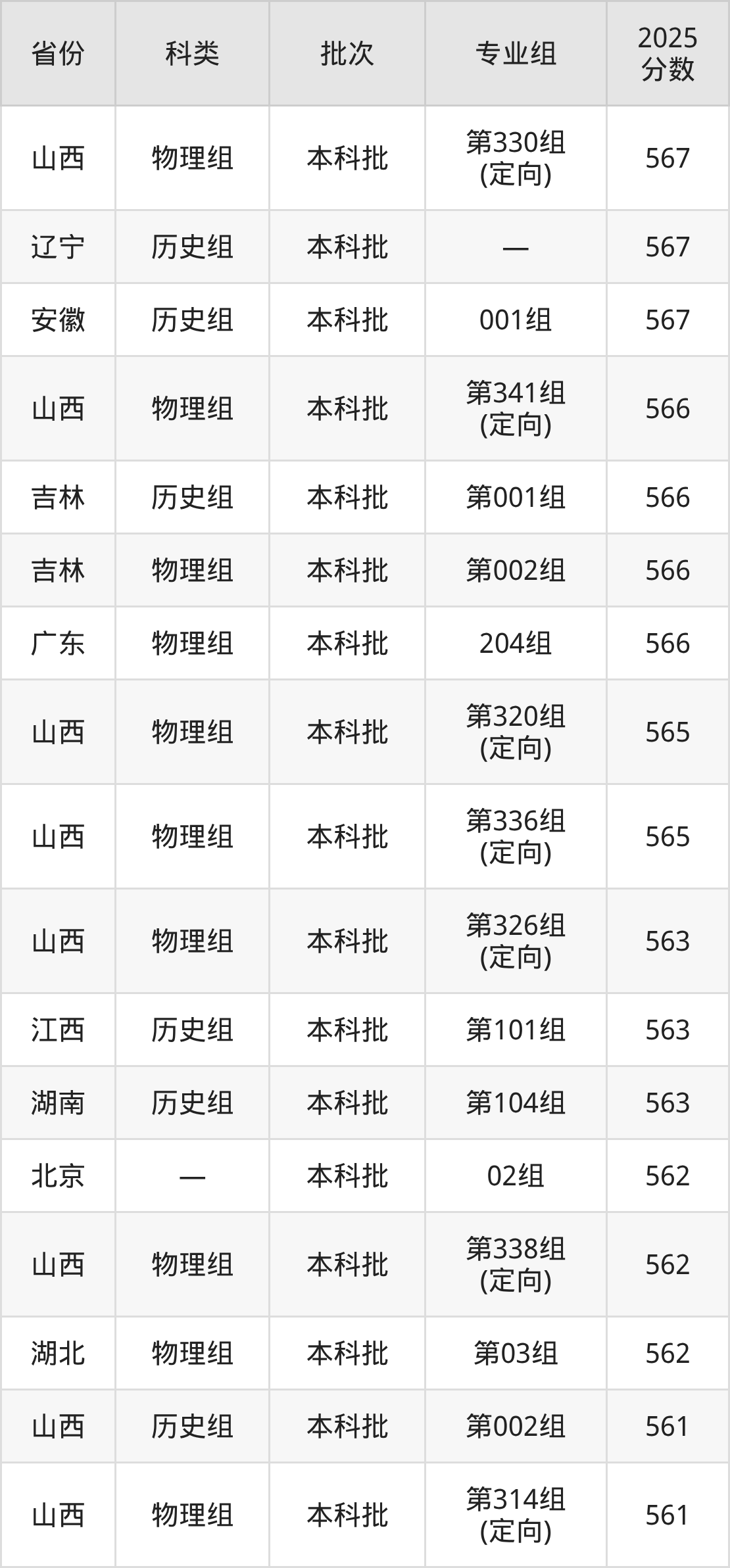 山西大学2026年录取分数需在高招结束官方数据公布后更新,2026届有意向报考该校的同学,可以在填报志愿时参考山西大学2025年录取分数线: