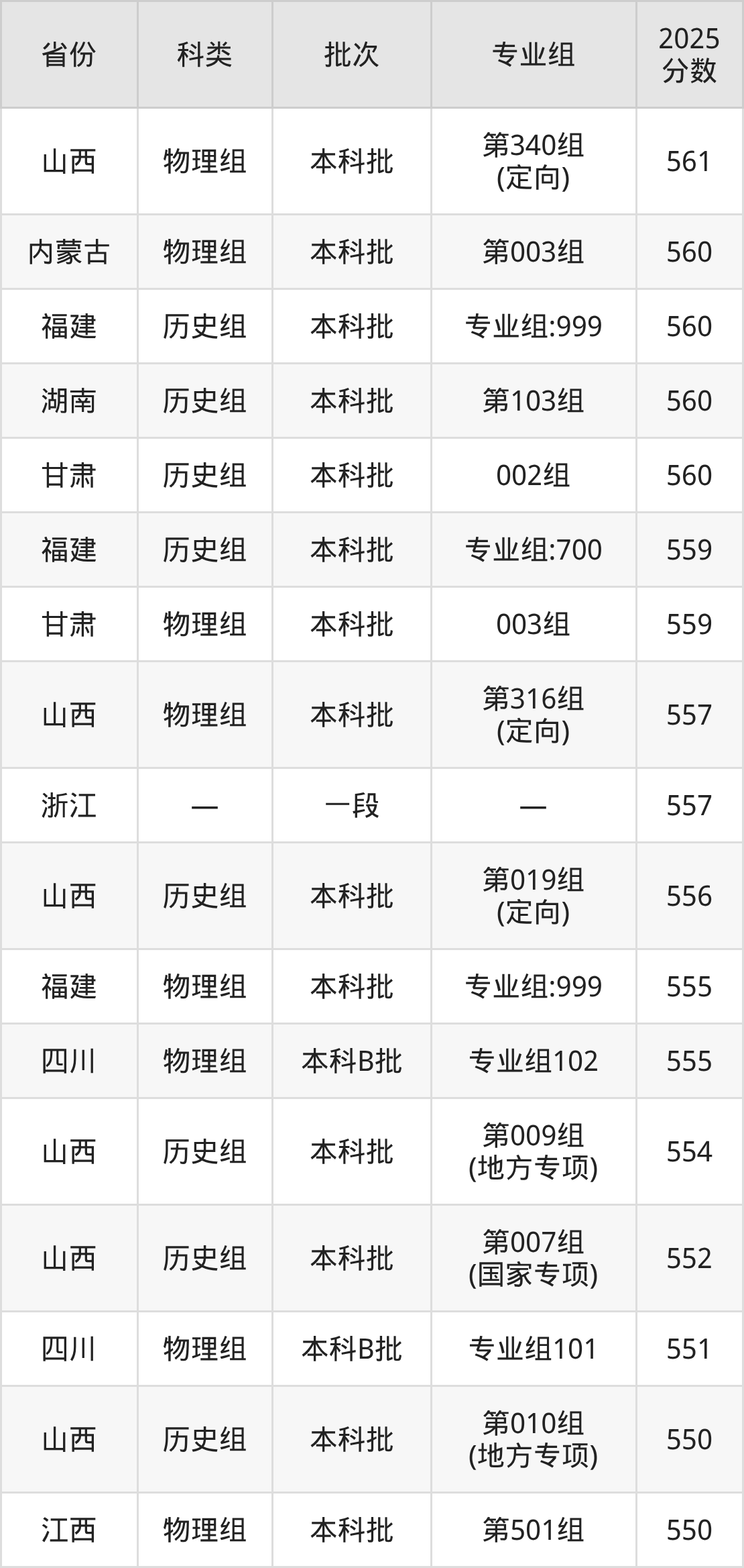 而海南地区考生的分数门槛最高,2025年山西大学专业组01在海南招生最低分为619分,考生至少要超本科线139分才有可能被录取。