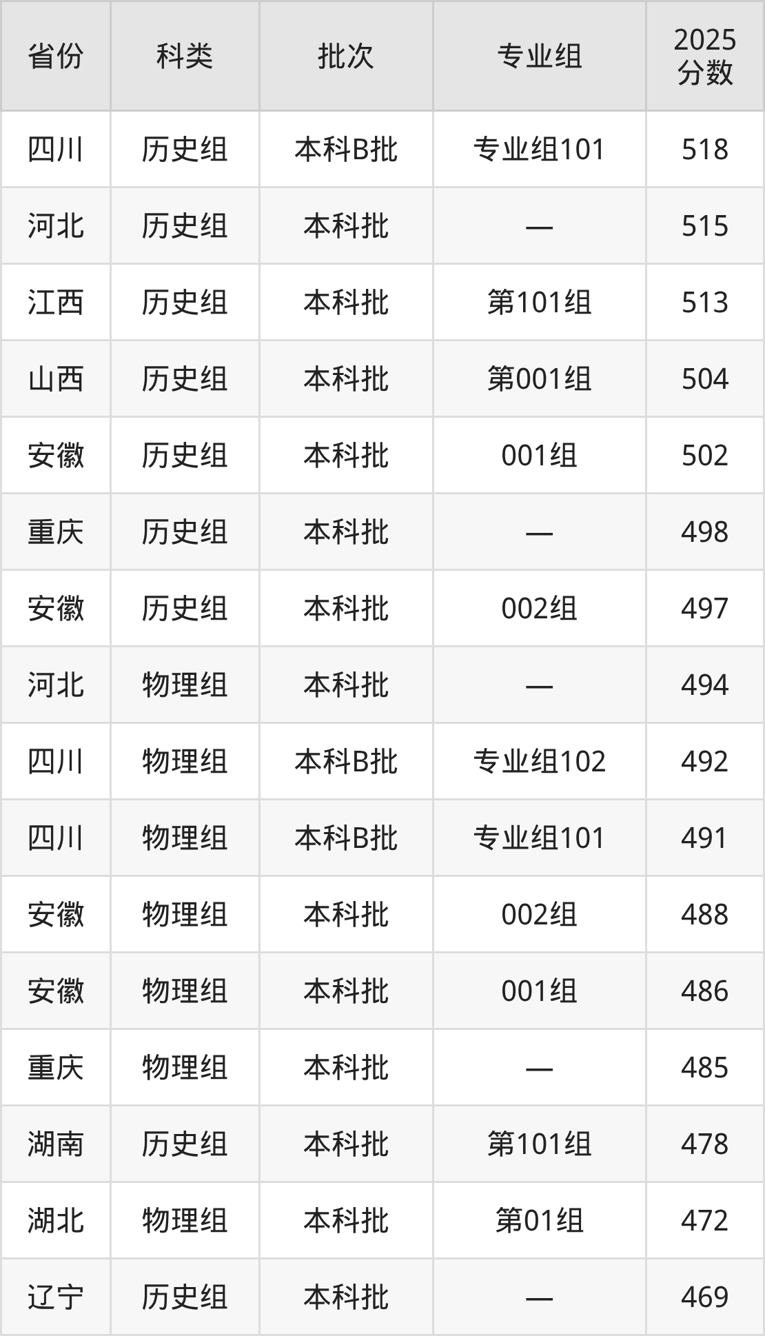 下面是西藏农牧大学2025年在全国各省的录取分数线一览表,供参考: