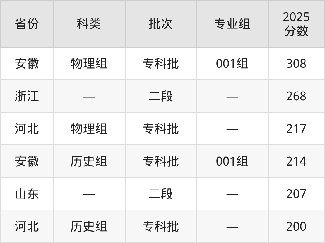 而安徽地区物理组考生的分数门槛最高,2025年郑州食品工程职业学院001组在安徽招生最低分为308分,考生至少要超专科线108分才有可能被录取。