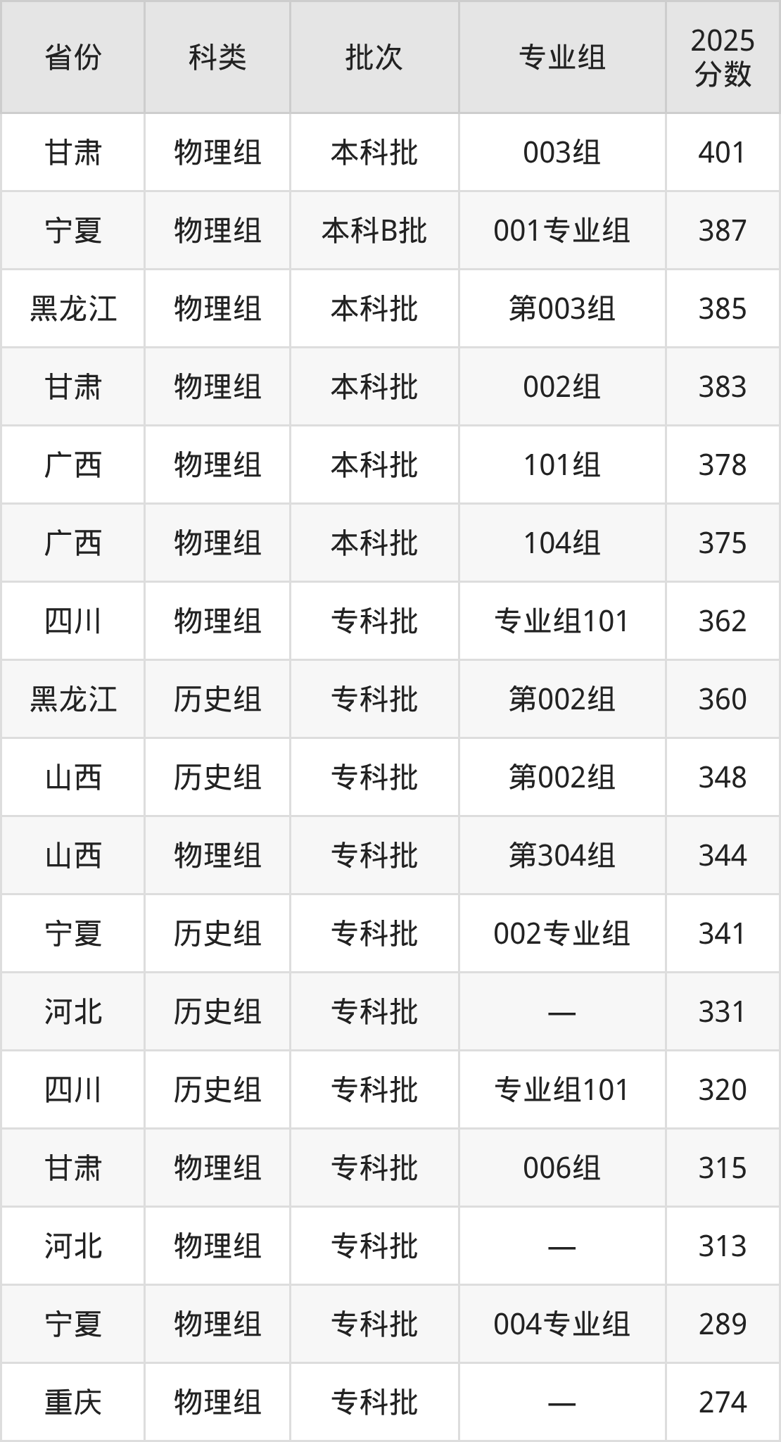 下面是西安工商学院2025年在全国各省的录取分数线一览表,供参考: