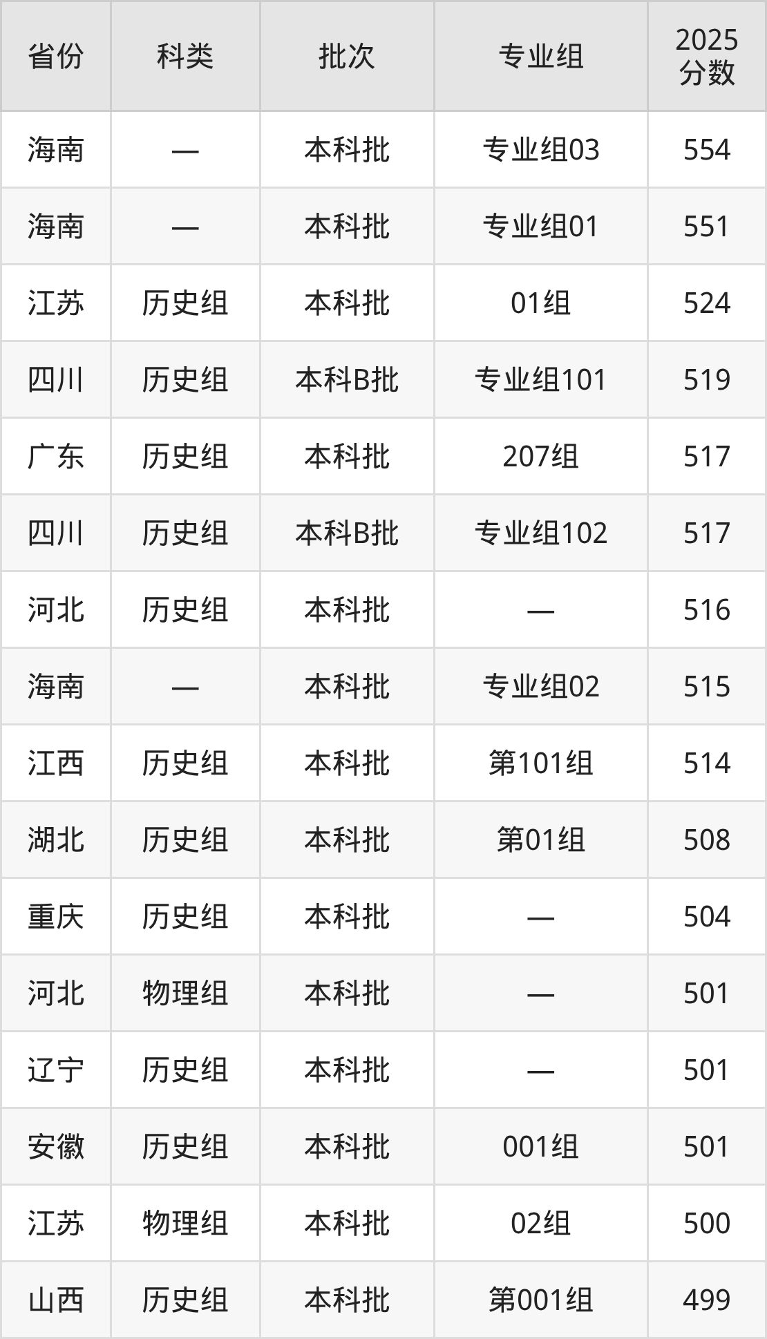 而海南地区考生的分数门槛最高,2025年吉林农业科技学院专业组03在海南招生最低分为554分,考生至少要超本科线74分才有可能被录取。