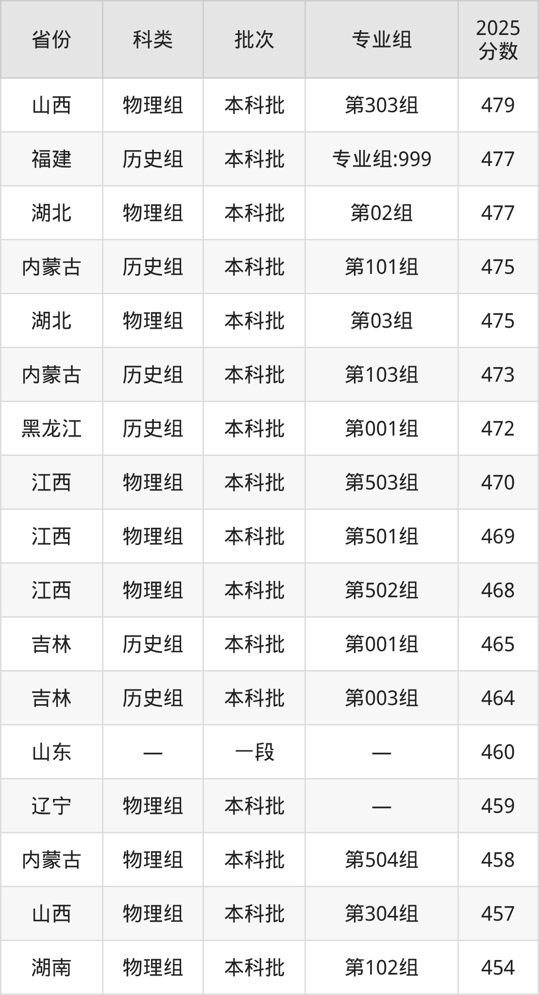 下面是吉林农业科技学院2025年在全国各省的录取分数线一览表,供参考:
