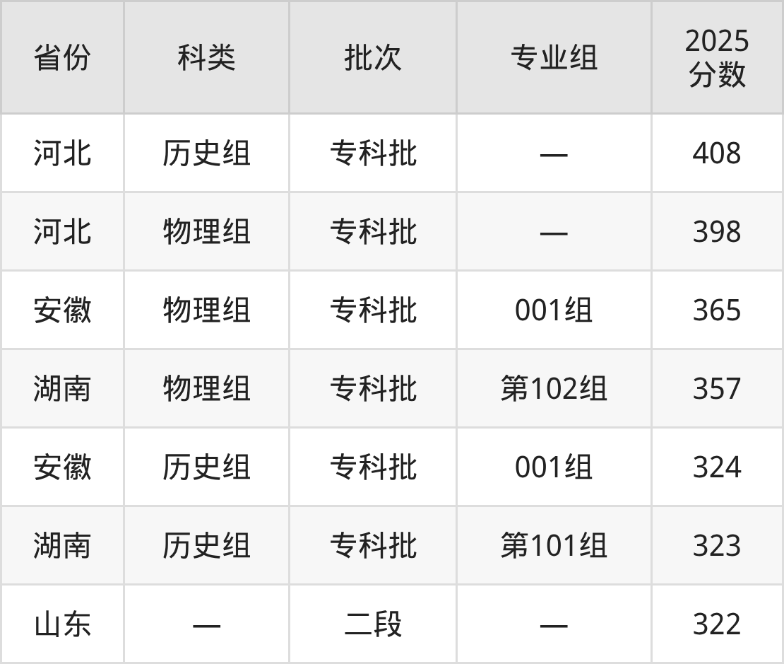 而河北地区历史组考生的分数门槛最高,2025年山东劳动职业技术学院在河北招生最低分为408分,考生至少要超专科线208分才有可能被录取。