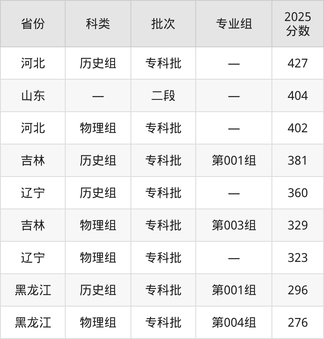 下面是黑龙江冰雪体育职业学院2025年在全国各省的录取分数线一览表,供参考: