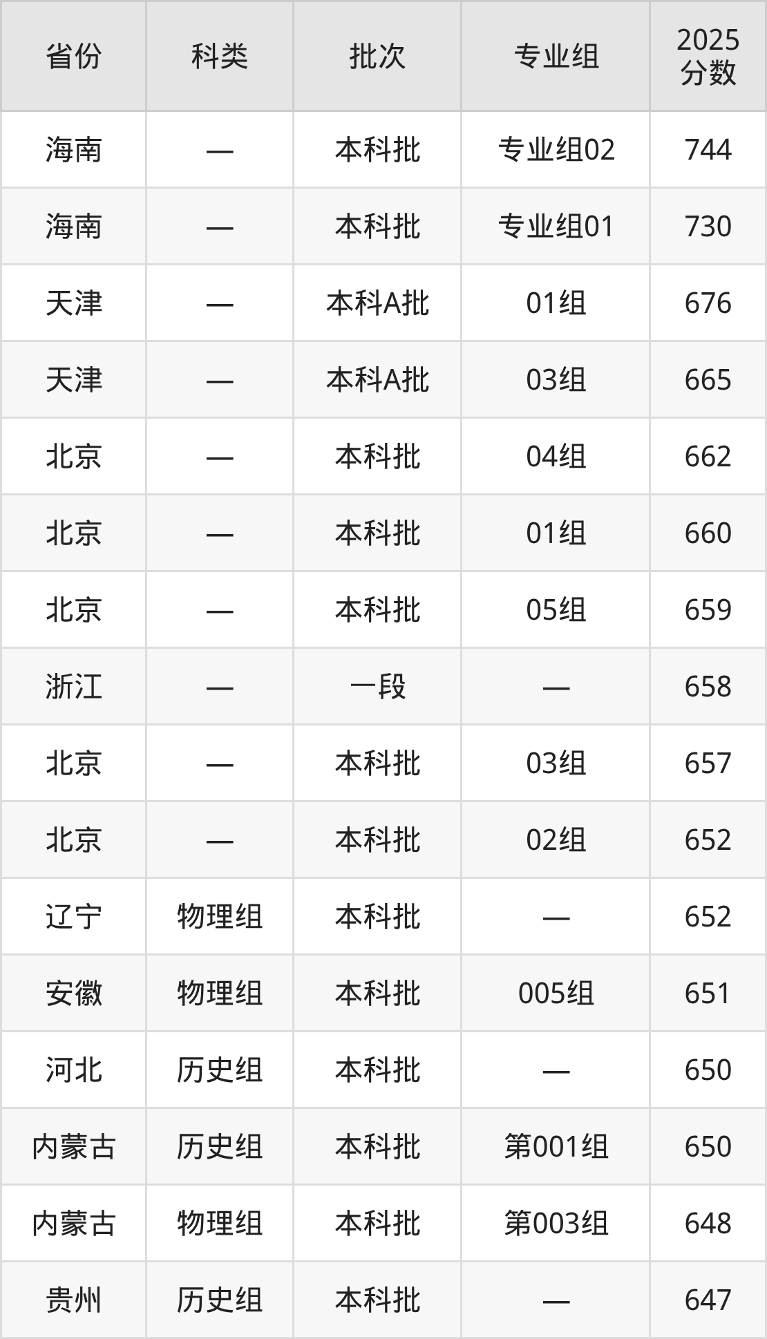 而海南地区考生的分数门槛最高,2025年北京师范大学专业组02在海南招生最低分为744分,考生至少要超本科线264分才有可能被录取。