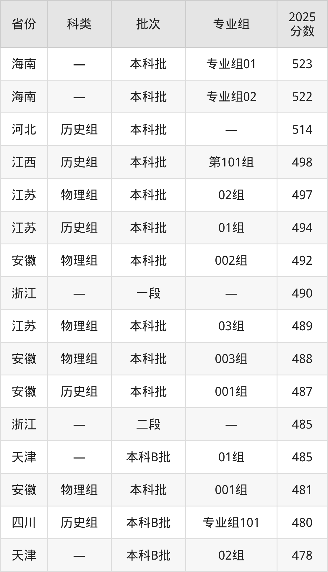 而海南地区考生的分数门槛最高,2025年西安财经大学行知学院专业组01在海南招生最低分为523分,考生至少要超本科线43分才有可能被录取。