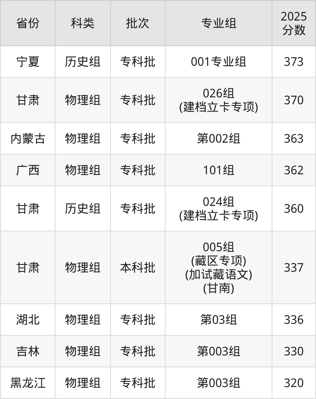 兰州资源环境职业技术大学2026年录取分数需在高招结束官方数据公布后更新,2026届有意向报考该校的同学,可以在填报志愿时参考兰州资源环境职业技术大学2025年录取分数线: