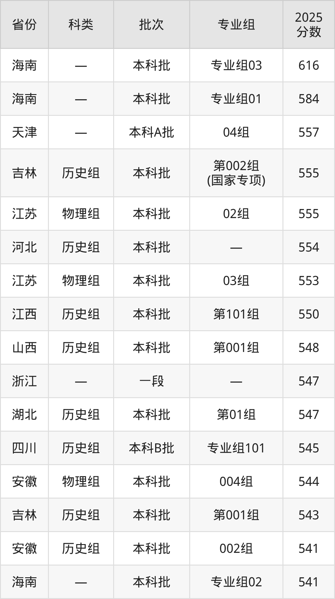 而海南地区考生的分数门槛最高,2025年大连民族大学专业组03在海南招生最低分为616分,考生至少要超本科线136分才有可能被录取。