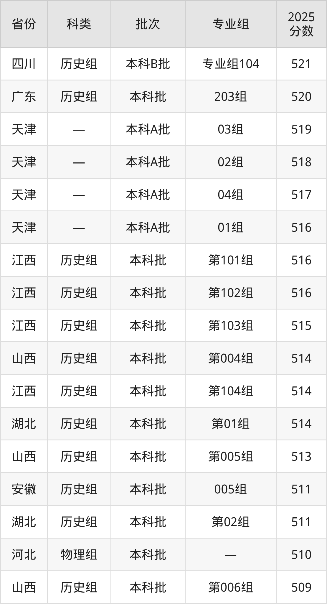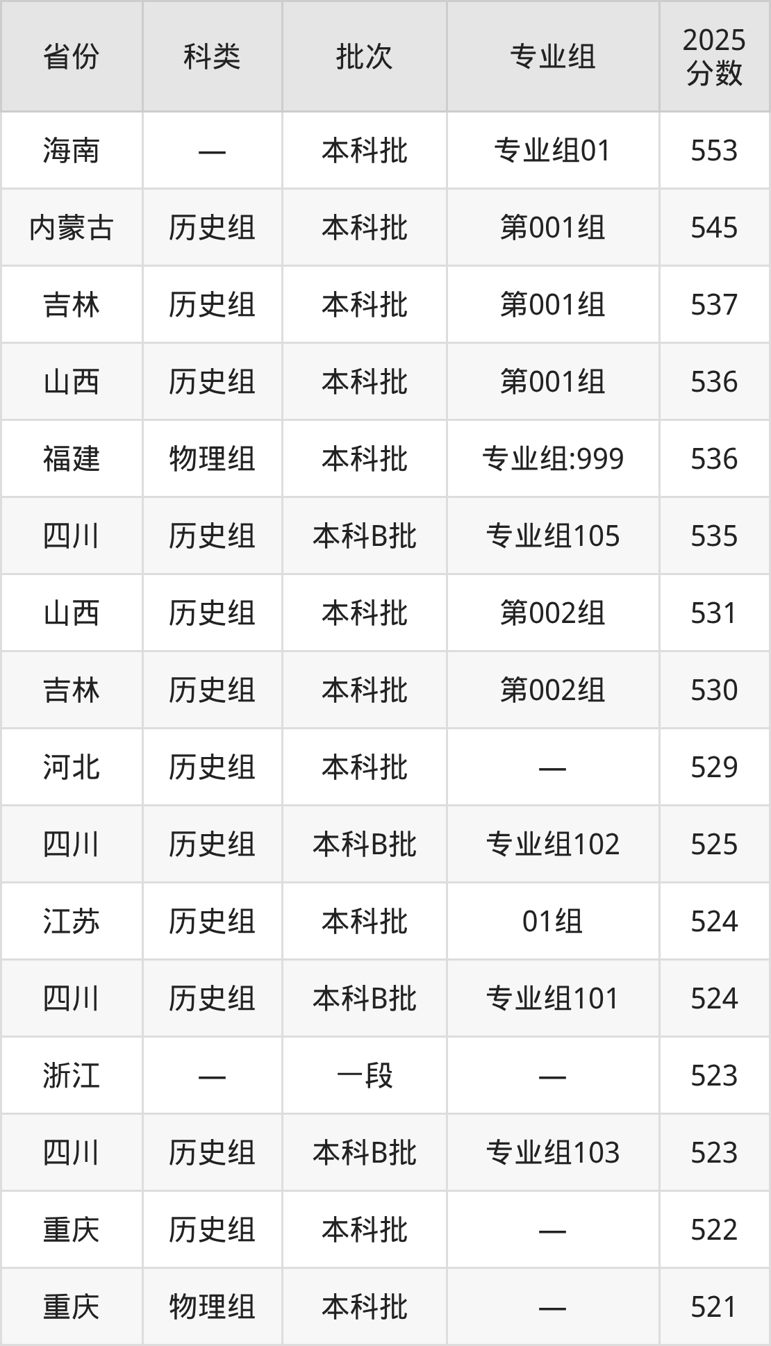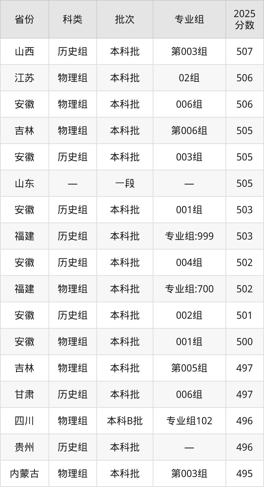 而海南地区考生的分数门槛最高,2025年鞍山师范学院专业组01在海南招生最低分为553分,考生至少要超本科线73分才有可能被录取。