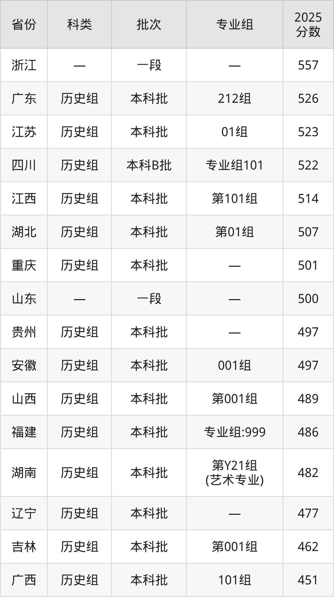 而浙江地区考生的分数门槛最高,2025年云南艺术学院在浙江招生最低分为557分,考生至少要超一段线67分才有可能被录取。