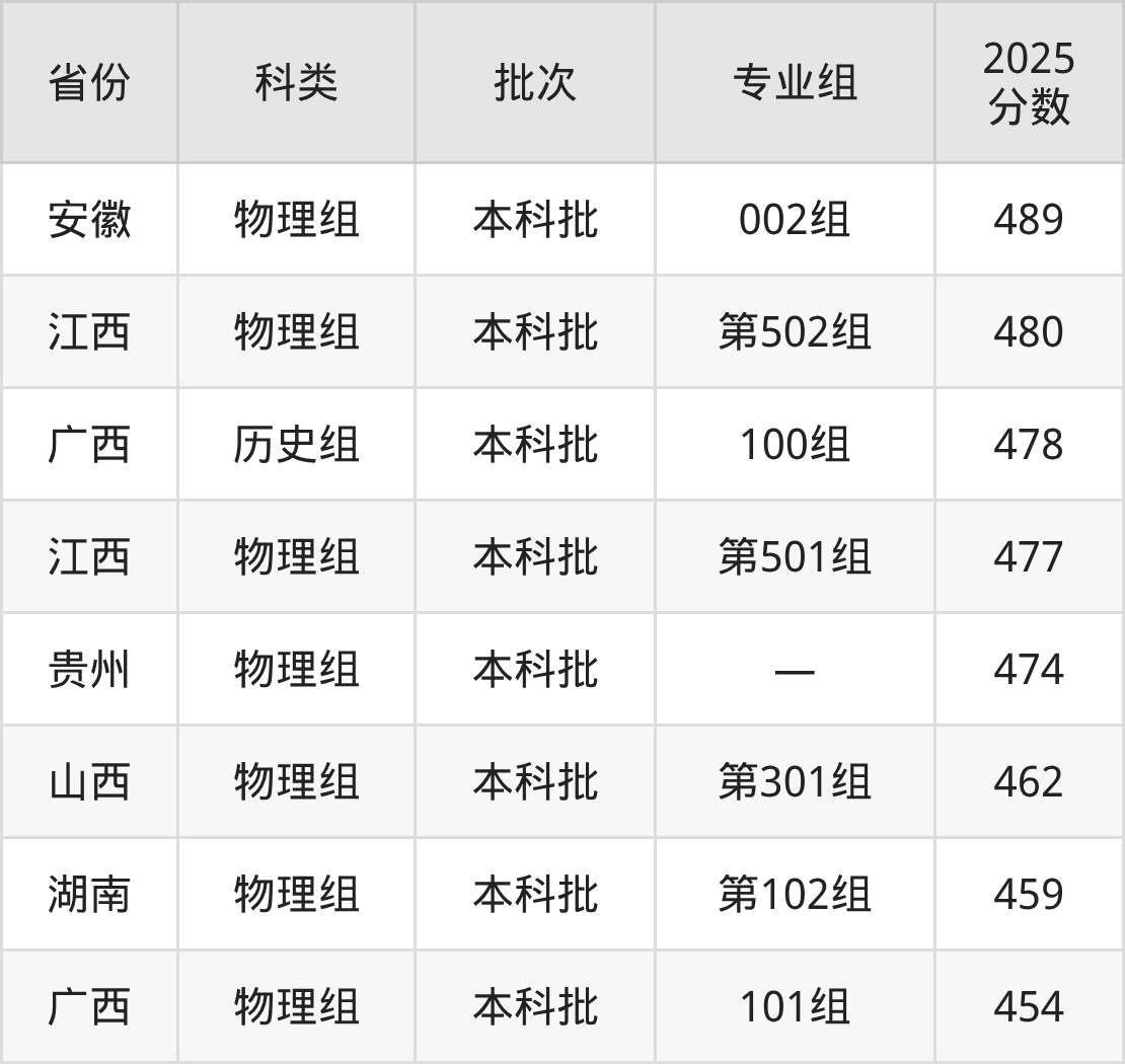 昭通学院在省外招生的最低分为454分,其中广西地区物理组考生上昭通学院的分数门槛最低,考生成绩超本科线84分(454分)可上。其次是湖南物理组考生,上昭通学院至少要超本科线54分(459分)。