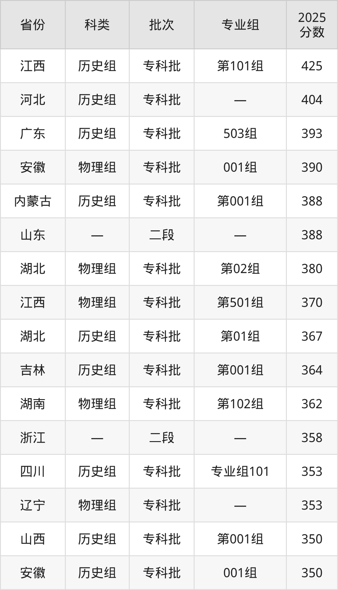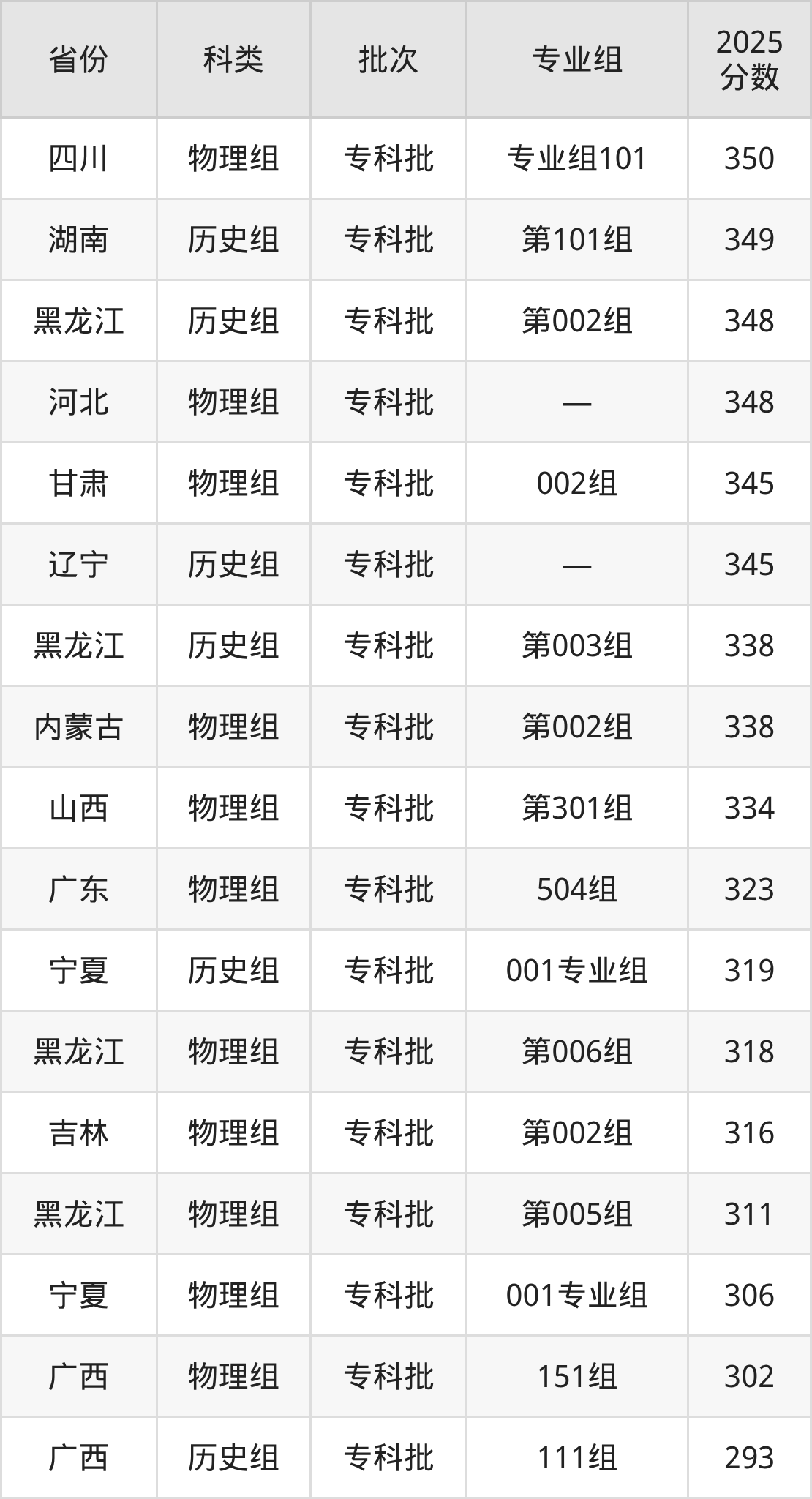 而江西地区历史组考生的分数门槛最高,2025年黑龙江职业学院第101组在江西招生最低分为425分,考生至少要超专科线135分才有可能被录取。