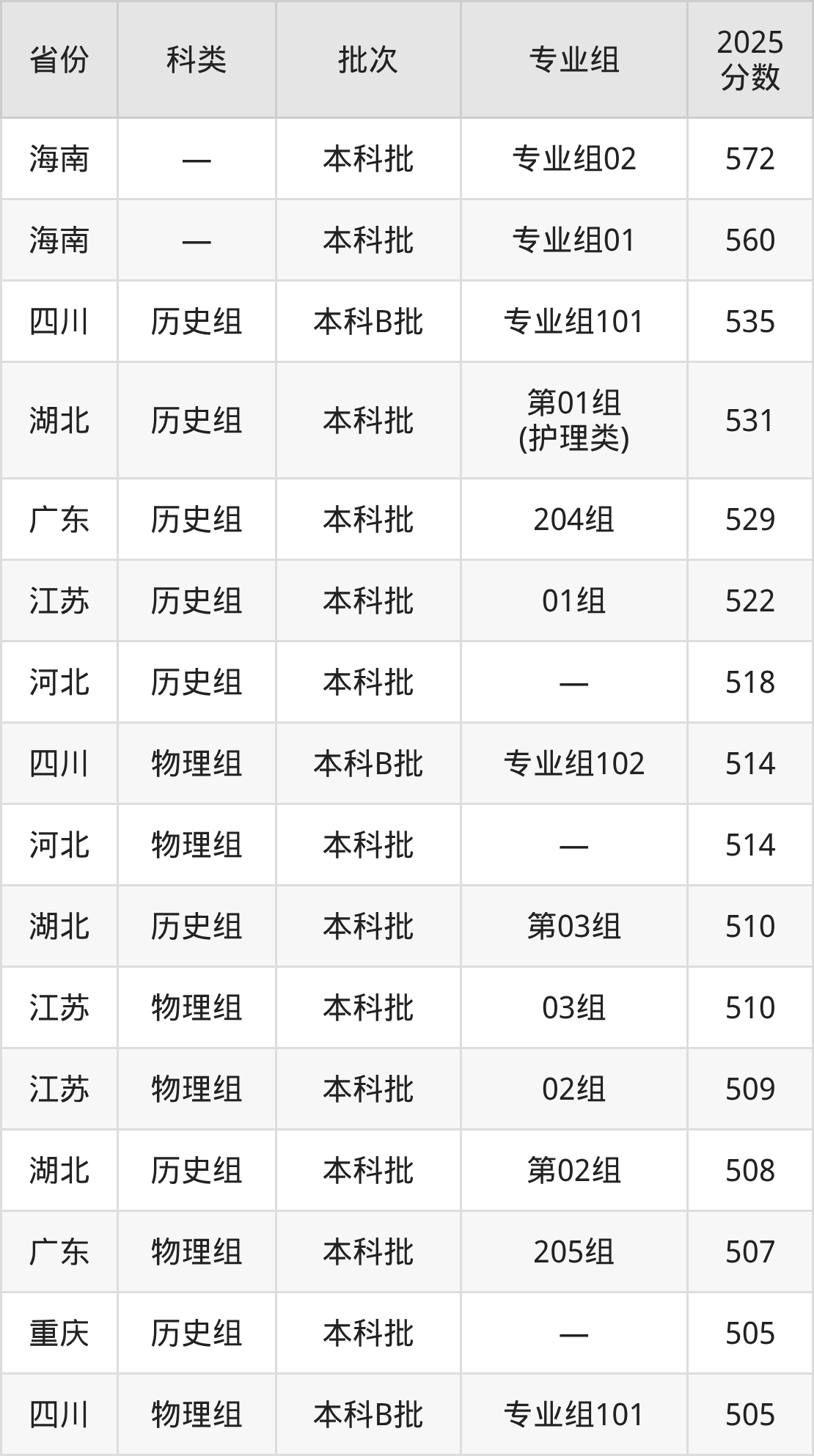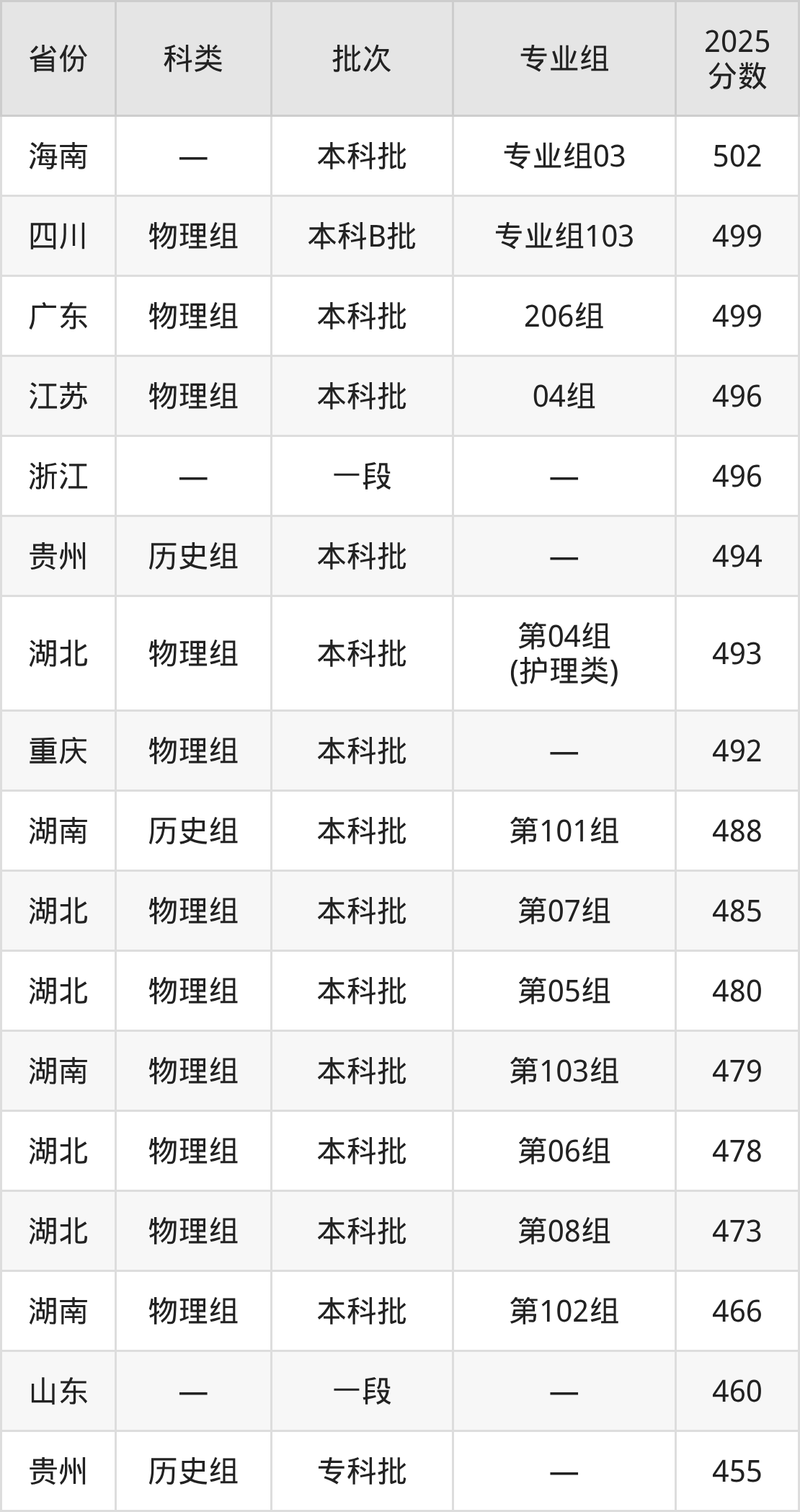 下面是贵阳康养职业大学2025年在全国各省的录取分数线一览表,供参考: