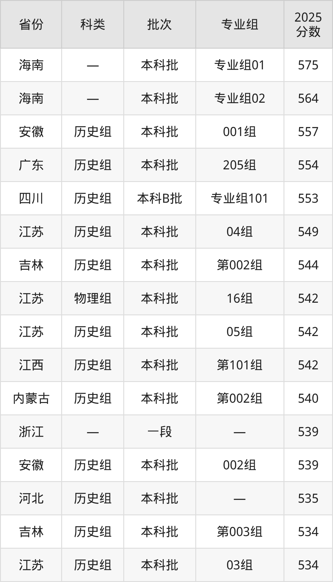 而海南地区考生的分数门槛最高,2025年盐城师范学院专业组01在海南招生最低分为575分,考生至少要超本科线95分才有可能被录取。