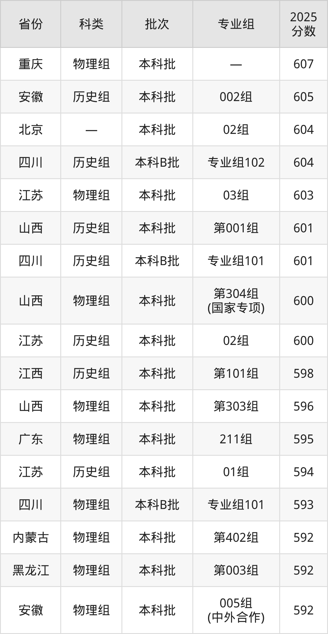 目前能查询到的最新分数为2025年招录数据,2026年合肥工业大学录取分数线会在高考招录结束后公布,本届考生可以利用往年分数预估录取概率。
