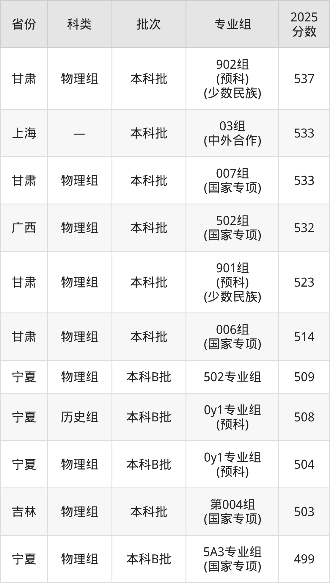 合肥工业大学在省外招生的最低分为499分,其次是吉林物理组考生,上合肥工业大学至少要超本科线163分(503分)。