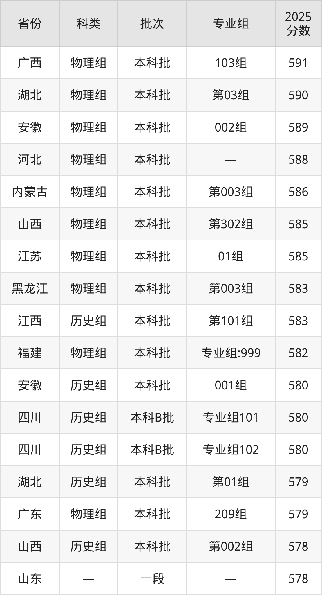 下面是杭州电子科技大学2025年在全国各省的录取分数线一览表,供参考: